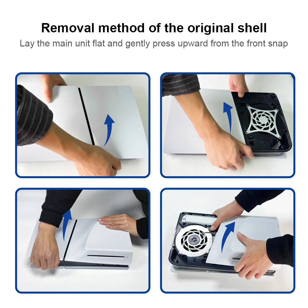 4.Fácil instalación:Instalar la cubierta de la carcasa frontal es muy sencillo.Simplemente coloque la consola plana, sostenga los bordes diagonales de la placa, levante hacia arriba hacia la izquierda, retire la carcasa original, alinee los orificios, cubra la consola y empuje hacia la derecha hasta que escuche un clic.