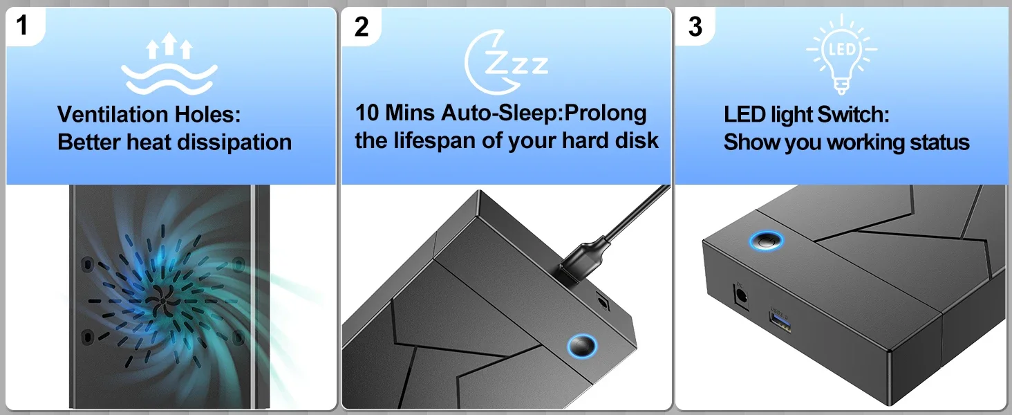 El título del producto dice "disco duro externo de alta velocidad", no una caja para disco duro. Bueno, claro, llegó una caja para un HDD. Dinero desperdiciado.