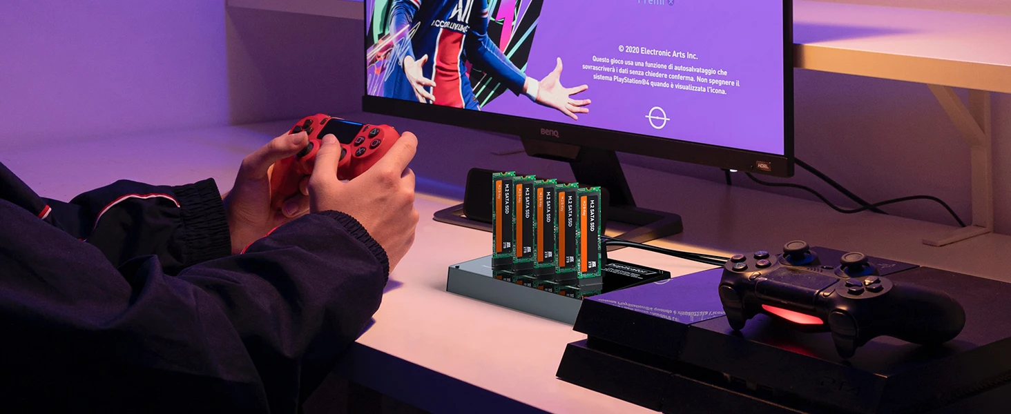 Comprar Carcasa de disco duro externo m2 SATA SSD, estación de acoplamiento, función de clon, funda de unidad de estado sólido duplicada, 5 bahías