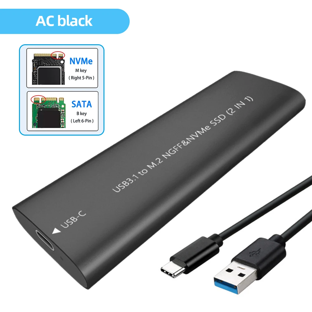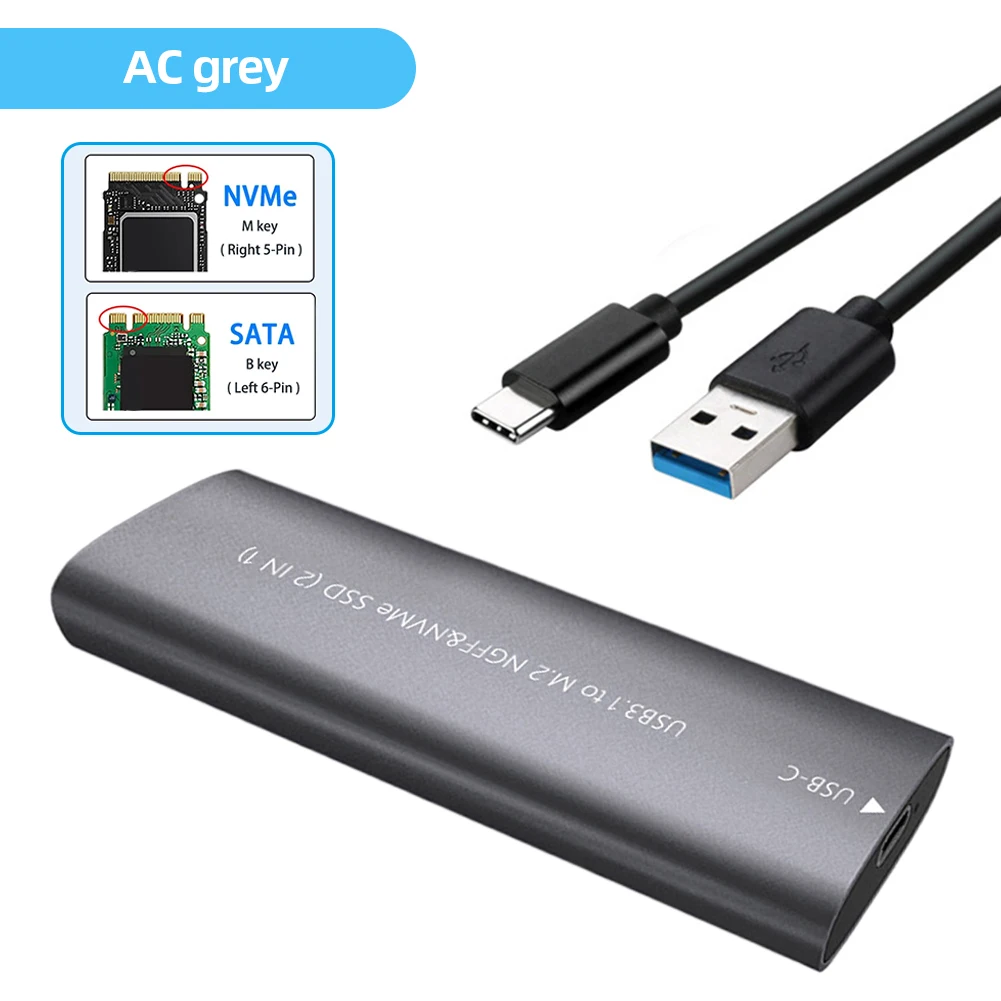 M.2 NGFF/MVMe SSD a USB 3,1 Caja SSD externa USB3.1 Tipo-C Caja de disco duro Aleación de aluminio Móvil M2 SSD Caja M.2 M Clave