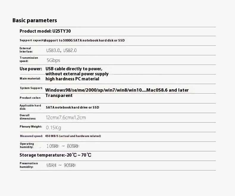 1.Supports: Most 7mm/9.5mm 2.5 inch SATA I/II/III HDD and SSD up to 6TB (Max)