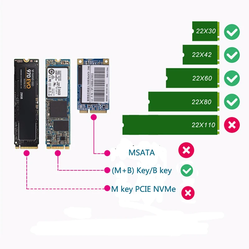 Nota:No es compatible con NVMe (Protocolo PCI-e) M.2 NGFF disco duro de estado sólido, Compruebe el tipo M.2 SSD antes de realizar el pedido, ¡Gracias!