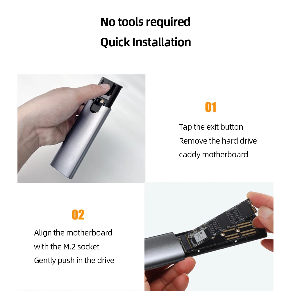 5. Fácil de usar:Nuestra caja SSD es fácil de montar y no requiere controladores o software adicionales, por lo que es fácil de usar con cualquier dispositivo que admita USB 3,1.