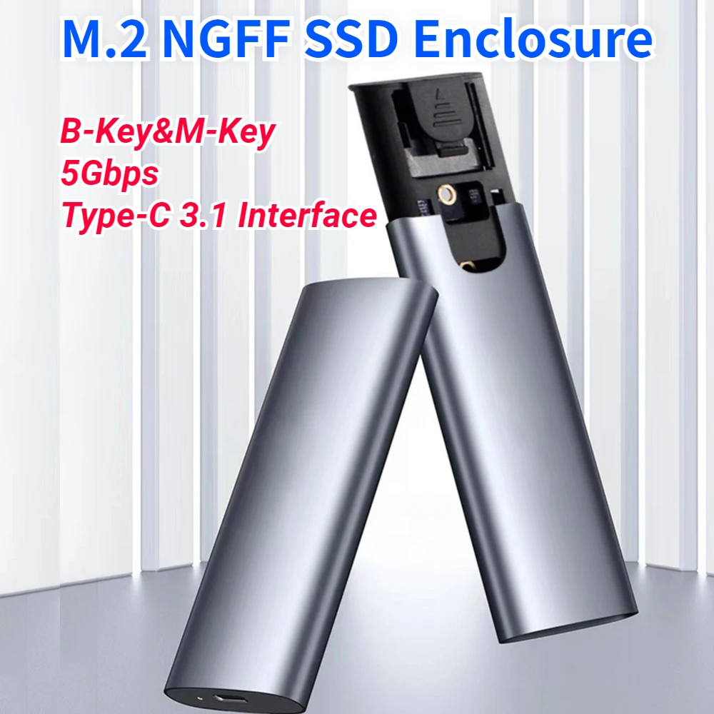 Adaptador de carcasa SSD externo M.2 NGFF a USB 3,1 Tipo-C 3,1 Caja de adaptador de unidad de estado sólido 5Gbps B/(+ M B) Aleación de aluminio clave para SSD 2230/2242/2260/2280