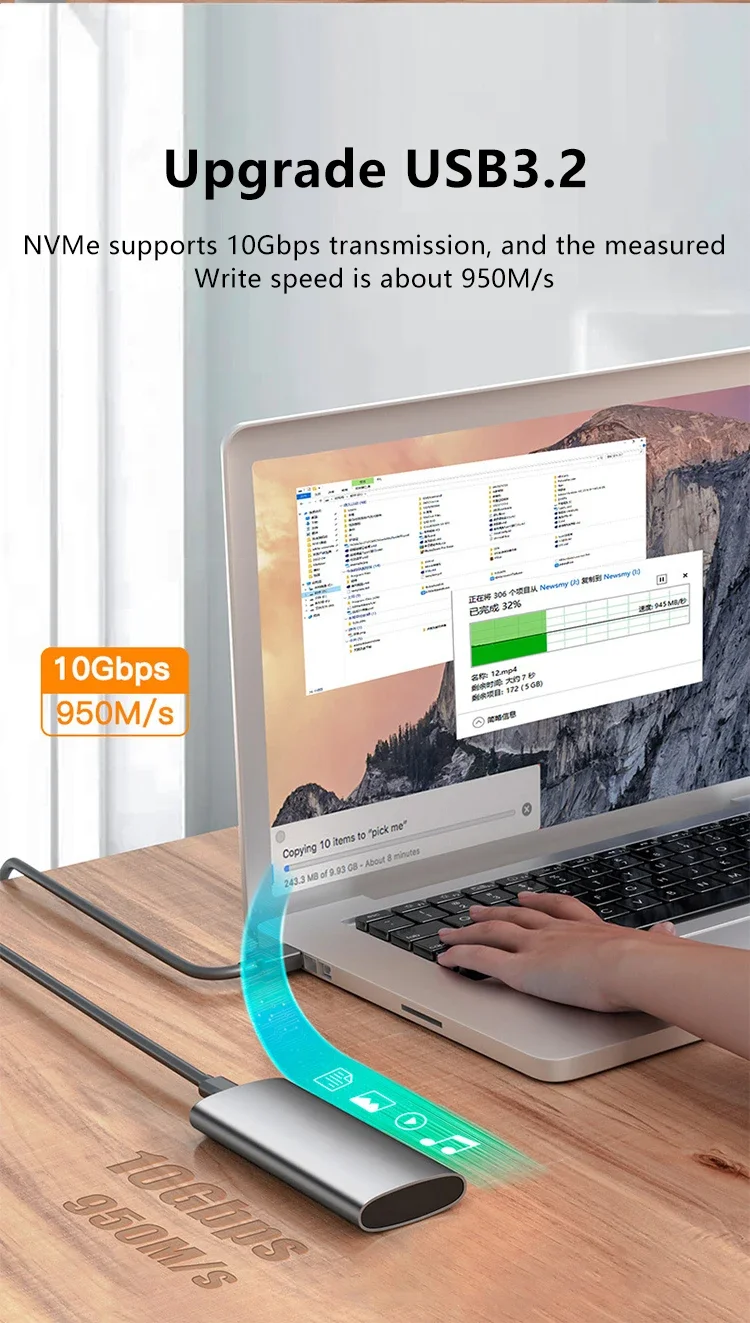 Solo admite el cable NVME PCI-E protocolo M Key/M & B key SSD, tipo-c a USB 3,0.