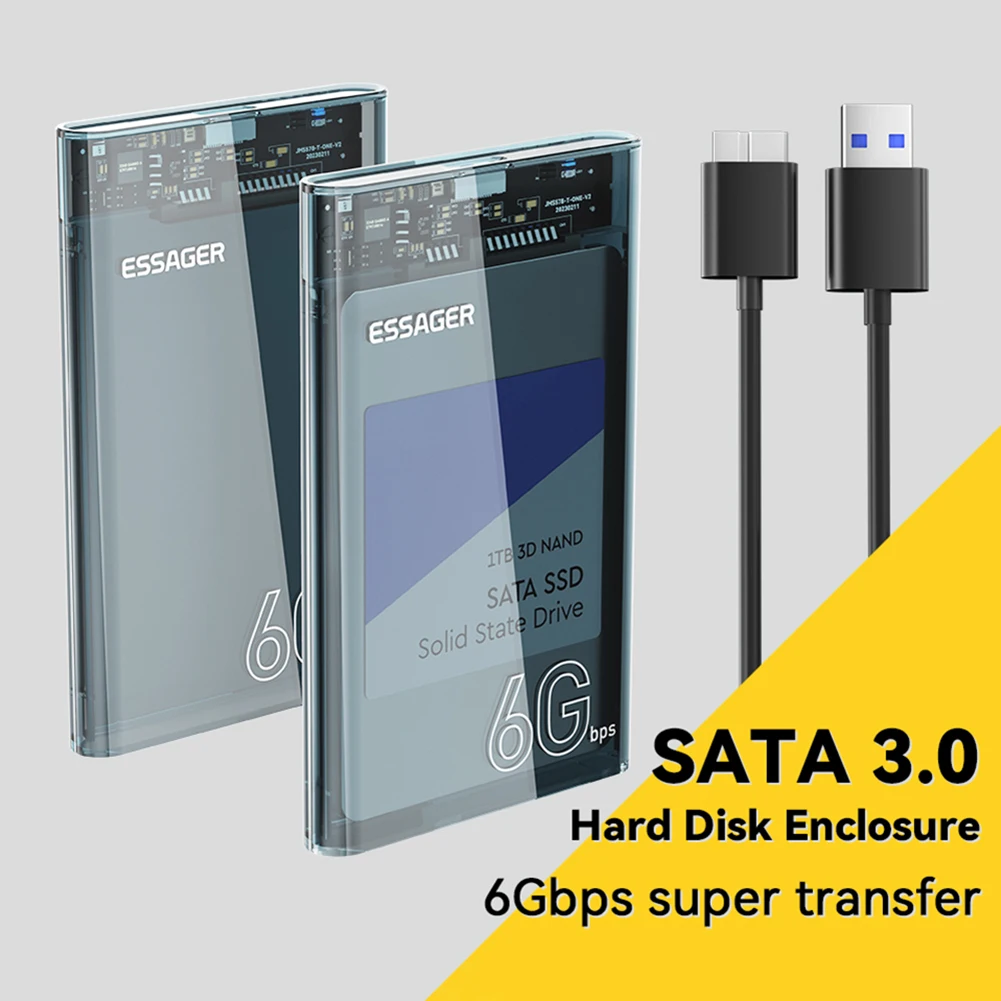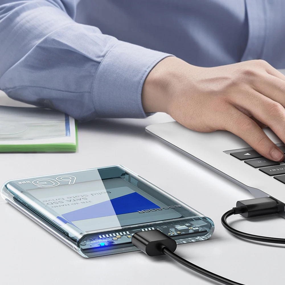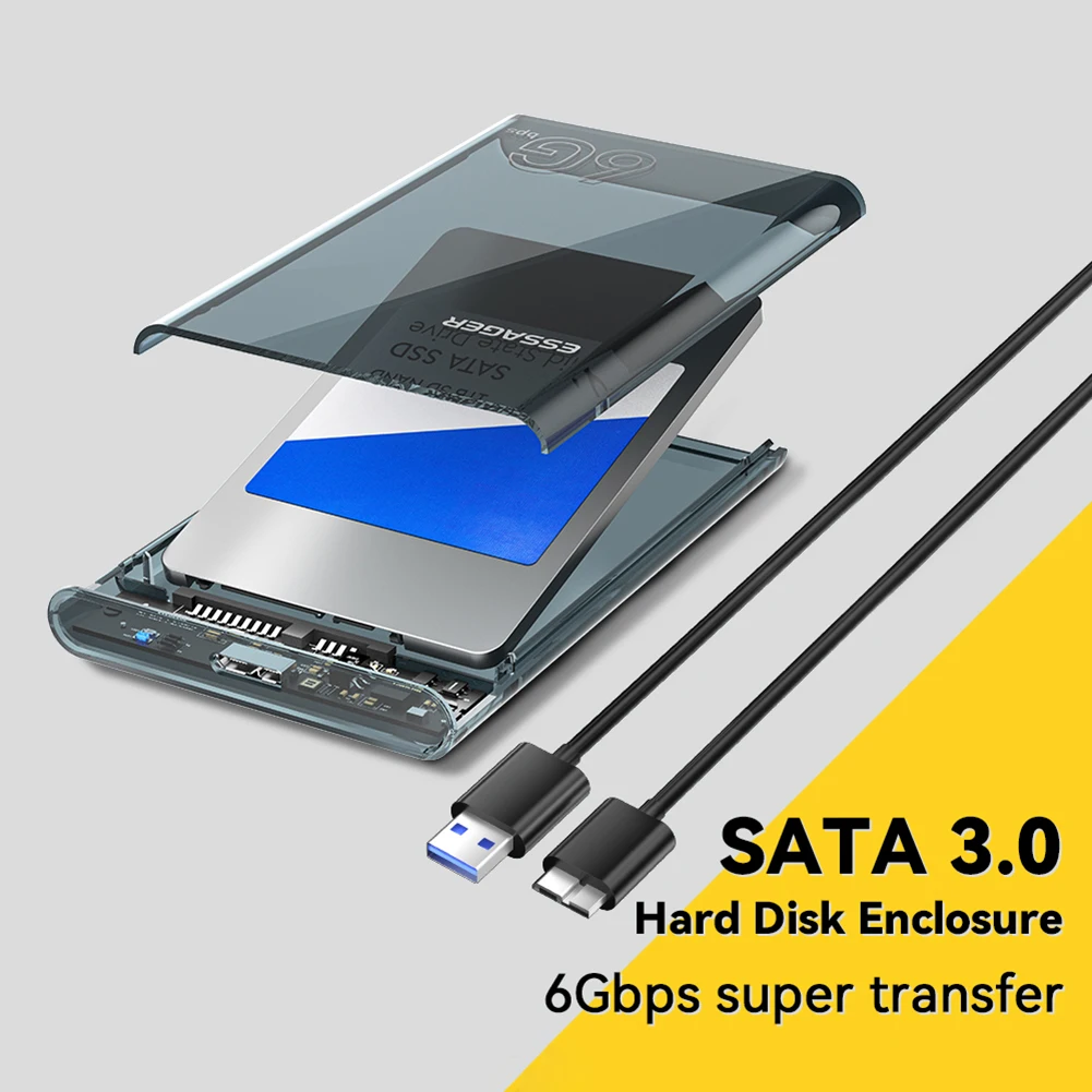Caja de disco duro móvil SATA de 2,5 pulgadas Max 6TB USB 3,0 Caja de disco duro externo Velocidad de 6Gbps sin herramientas para 2,5 pulgadas 7/9.5mm SATA HDD SSD