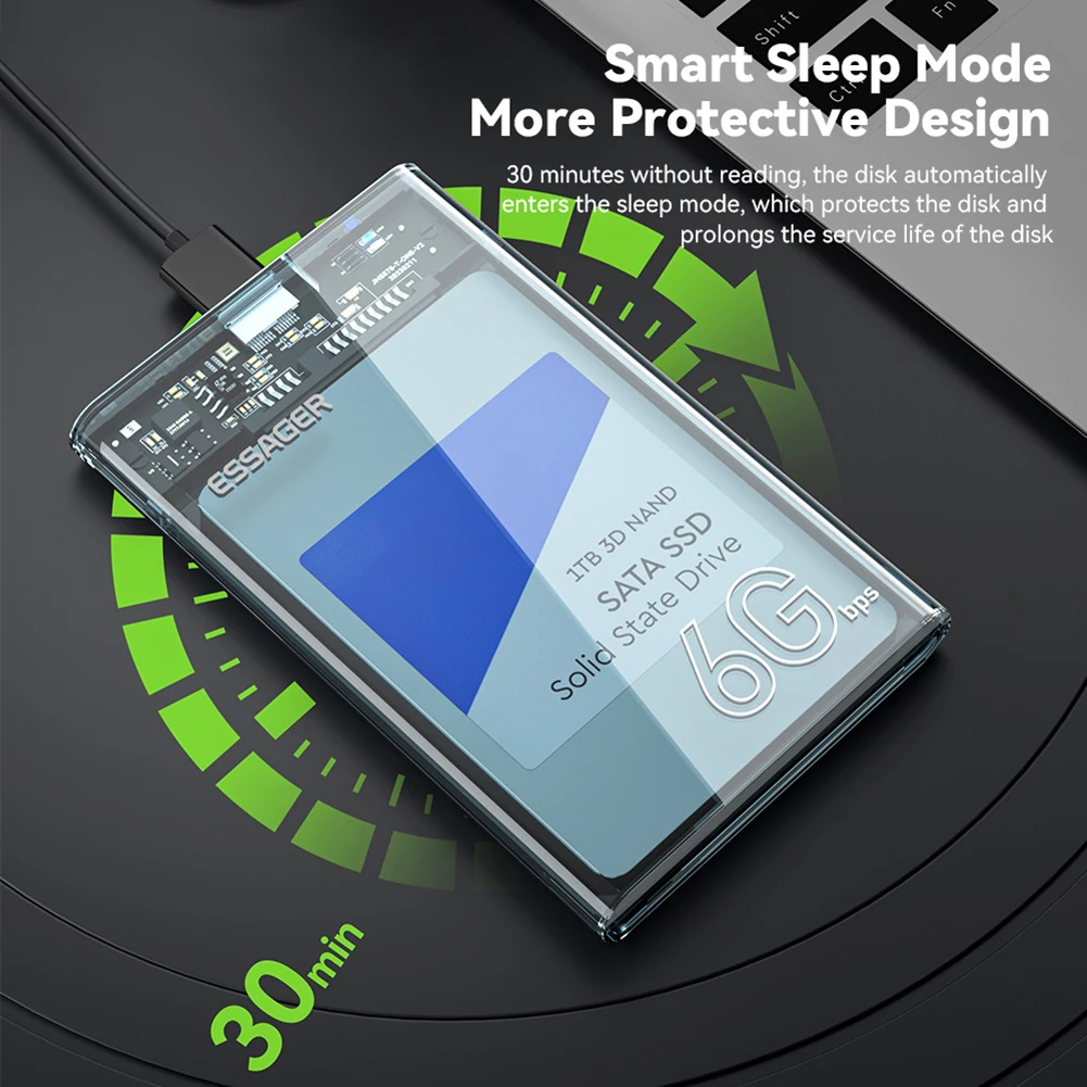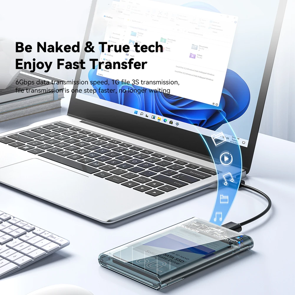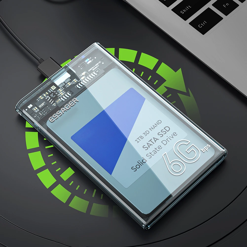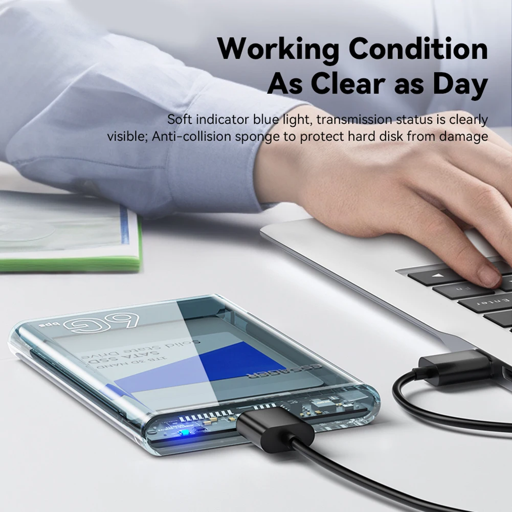 5. Velocidades de transferencia USB 3,0:Equipado con interfaz USB 3,0, este estuche de disco duro externo ofrece velocidades de transferencia de datos de alta velocidad, mejorando significativamente las velocidades de lectura y escritura de su SSD. Maximiza el rendimiento potencial de su unidad de estado sólido, lo que permite transferencias de archivos más rápidas y una eficiencia general mejorada.