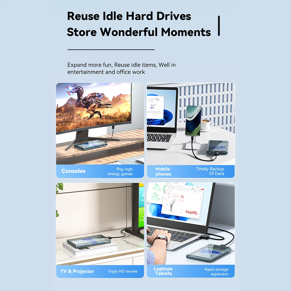 3. No se requieren reinicio ni controladores adicionales:Estas fundas de disco duro móvil están diseñadas para una compatibilidad perfecta. Puede conectar su unidad y comenzar a usarla inmediatamente sin necesidad de reiniciar el sistema o instalar controladores adicionales. Ofrece una funcionalidad sin esfuerzo y sin complicaciones.