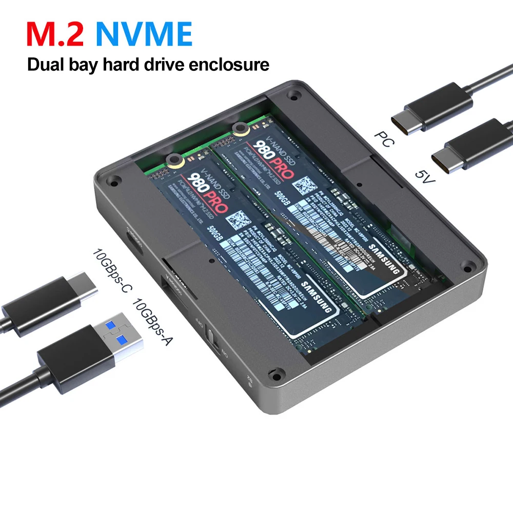 7.Puede funcionar a plena carga y conectar 2 SSD NVMe y 2 puertos HUB al mismo tiempo