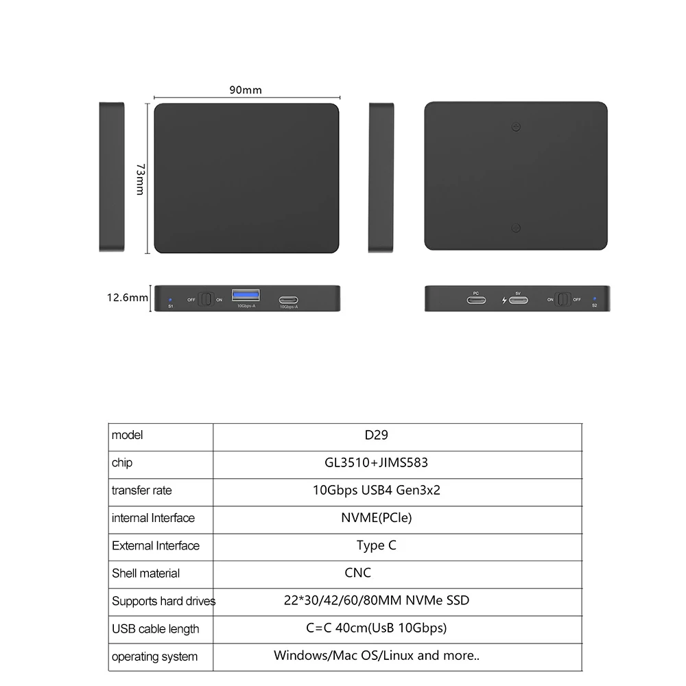 3.La especificación USB+tipo c de la interfaz HUB es gen3 10Gpcs, que se puede conectar a un disco duro móvil externo u otros dispositivos
