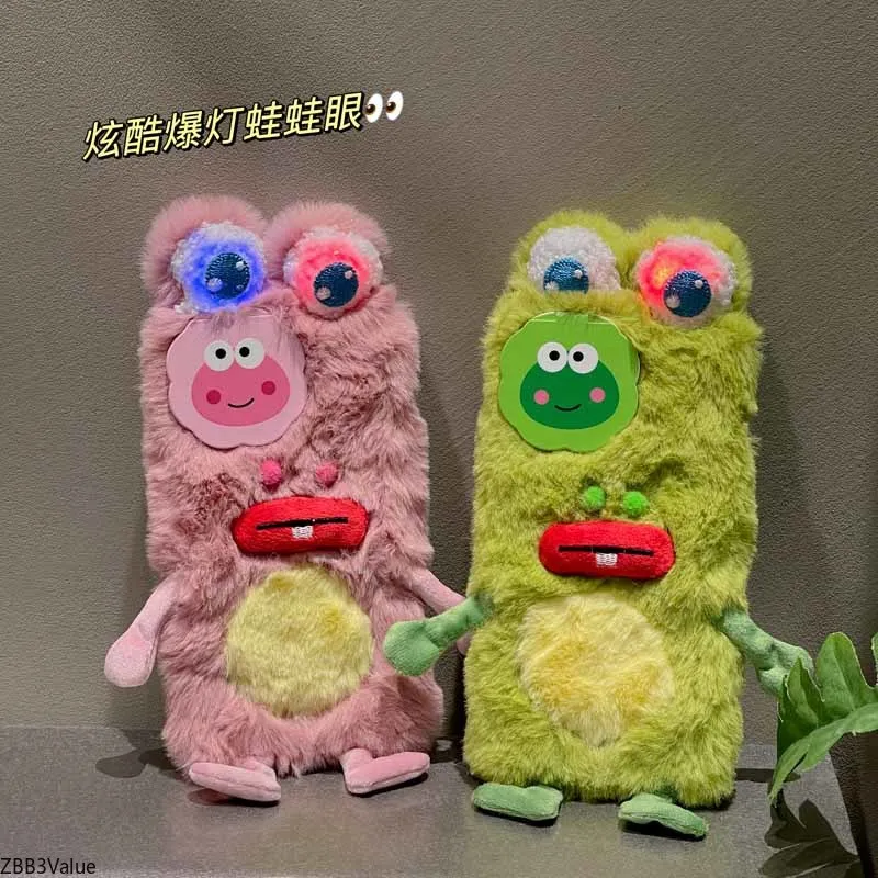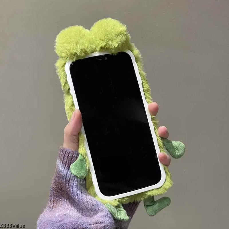 Carcasa de felpa con agujeros finos para iPhone, carcasa bonita de rana de dibujos animados para pareja, piel para AirPods Pro 14 Pro Max 14 Plus 14 13 Pro 12 Pro 11 Pro Max 11