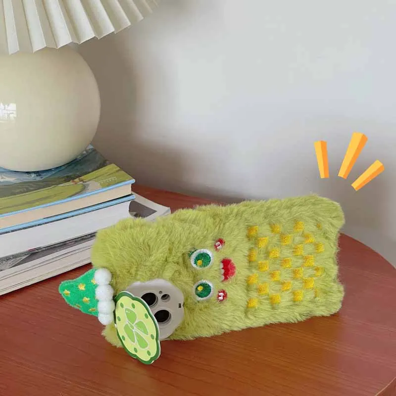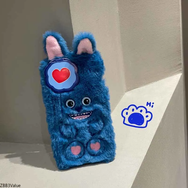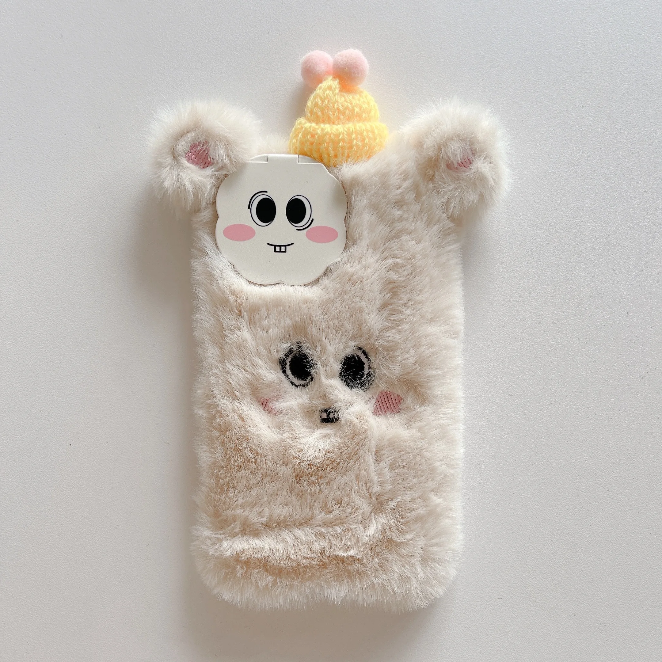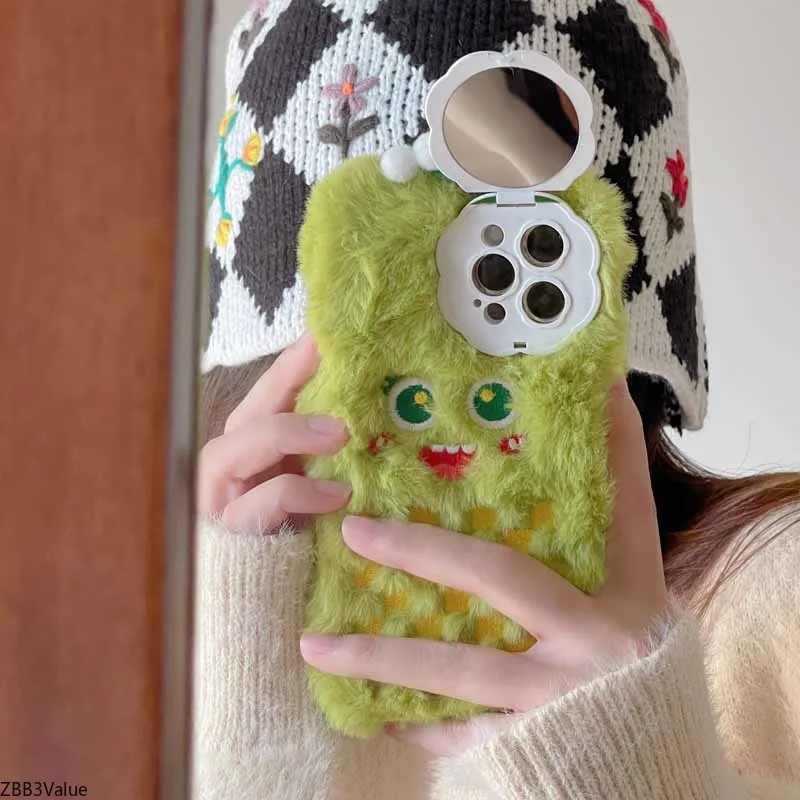 Comprar Carcasa de felpa de dibujos animados con espejo protector, carcasa de piel con agujero fino para iPhone 14 Pro Max 14 Plus 14 13 Pro 12 Pro 11 Pro Max 11