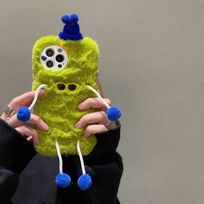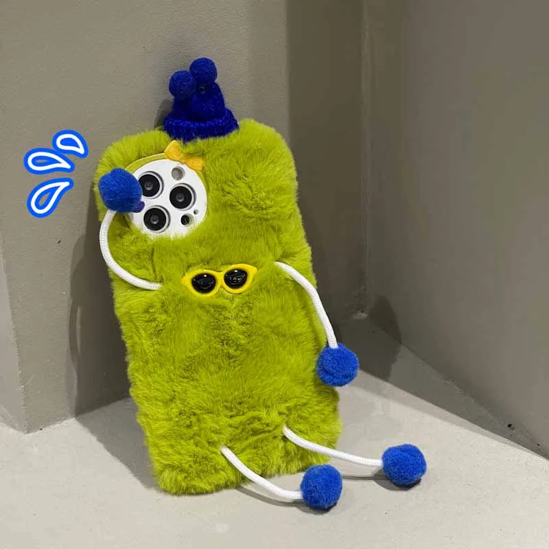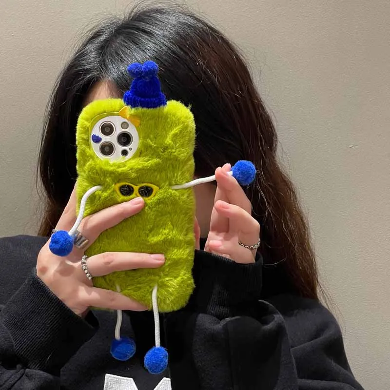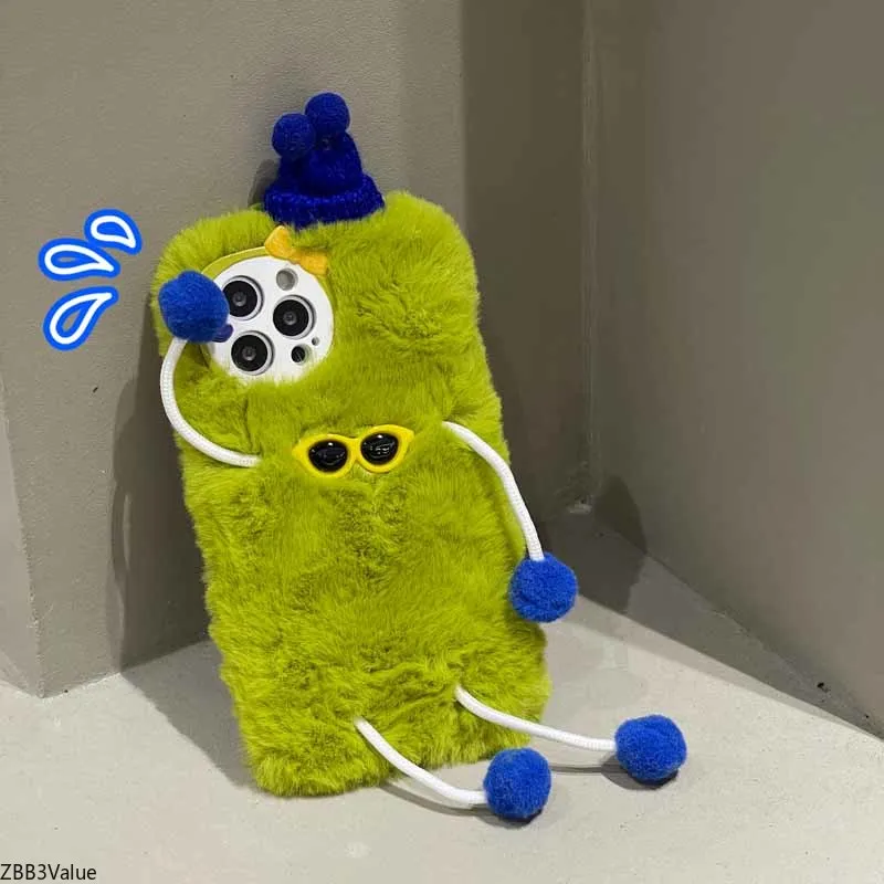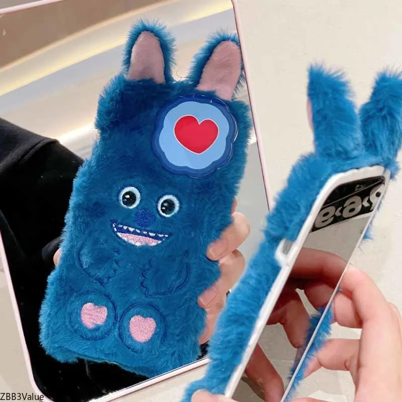 Comprar Carcasa de felpa de dibujos animados con espejo protector, carcasa de piel con agujero fino para iPhone 14 Pro Max 14 Plus 14 13 Pro 12 Pro 11 Pro Max 11