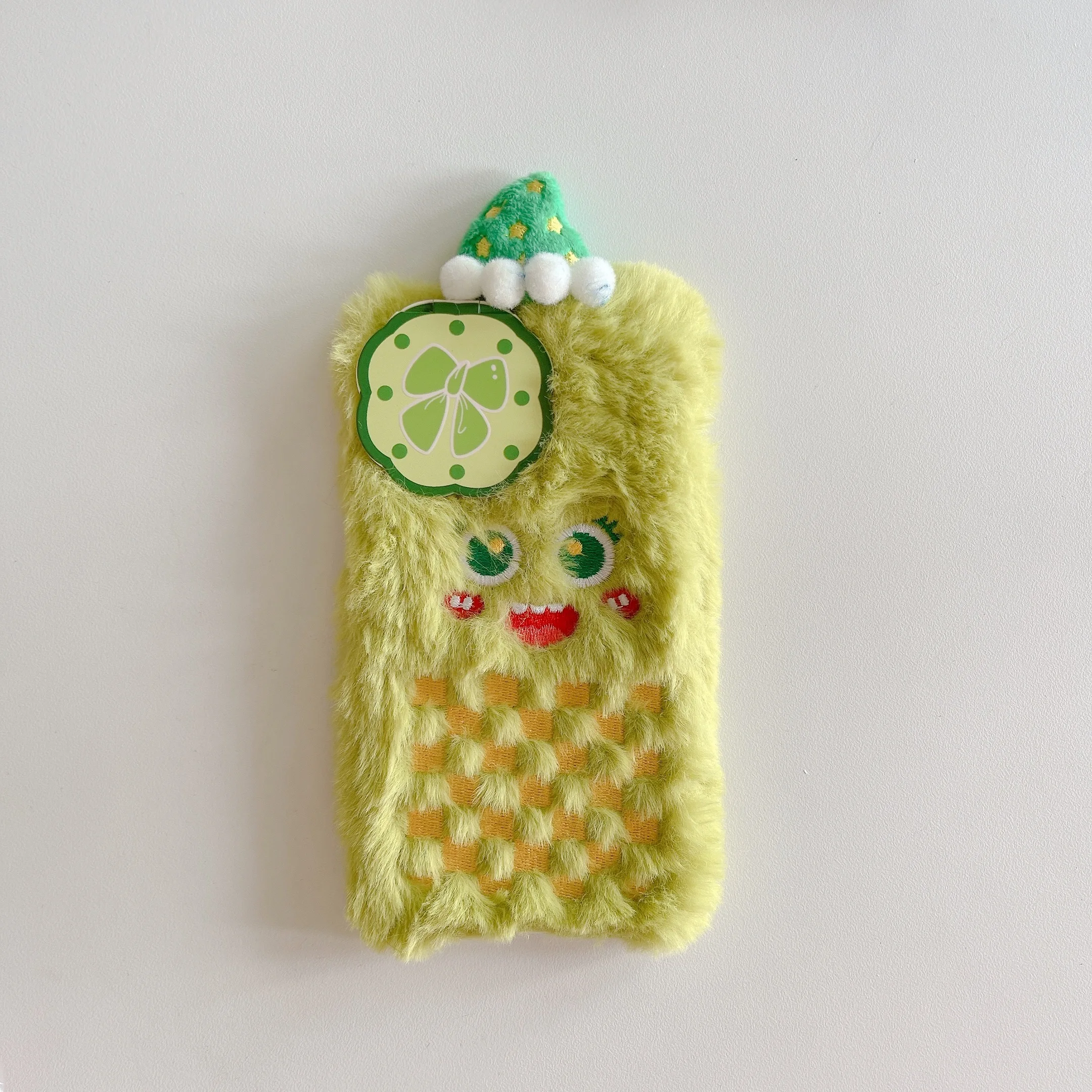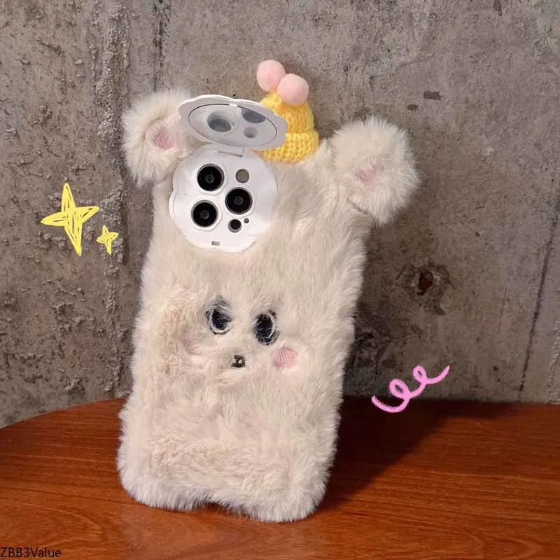 Carcasa de felpa de dibujos animados con espejo protector, carcasa de piel con agujero fino para iPhone 14 Pro Max 14 Plus 14 13 Pro 12 Pro 11 Pro Max 11