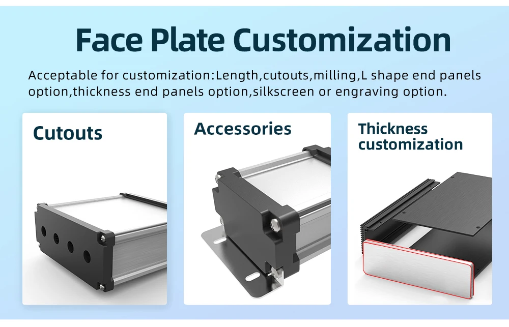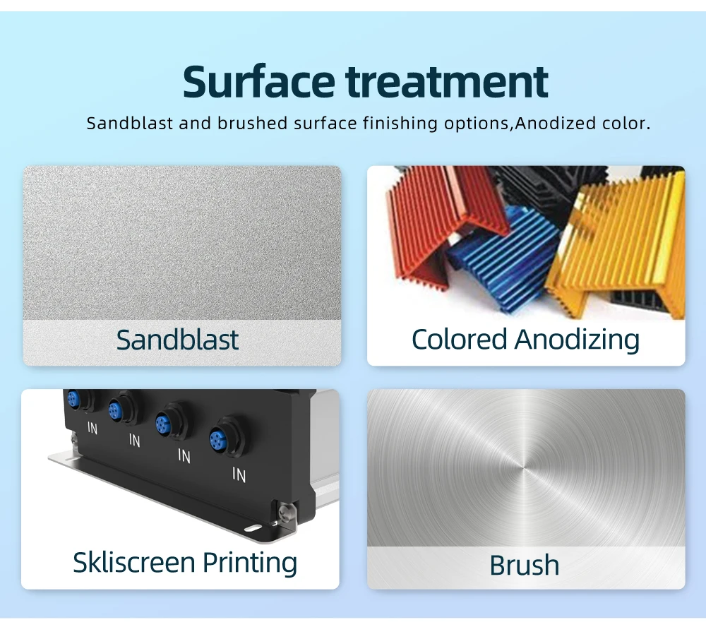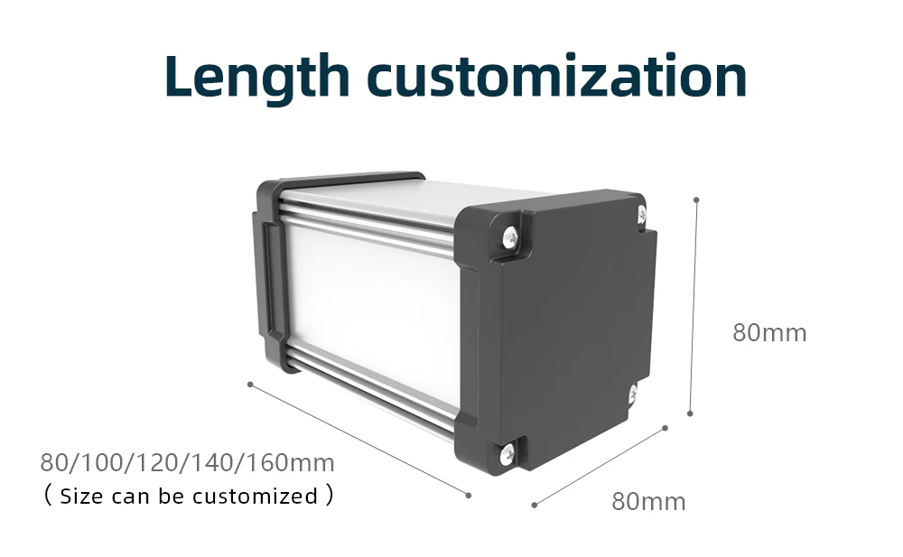 1. Anillo de sellado de silicona integrado2. Personalización de longitud3. Carcasa de aluminio extruido, con paneles finales de fundición a presión4. Buen diseño de tornillos de sellado, tasa de impermeabilidad de hasta IP685. Agujeros de corte y fresado personalizados6. Se aplica al tránsito ferroviario, detección subacuática, equipo de monitoreo exteriorEspecificaciones: