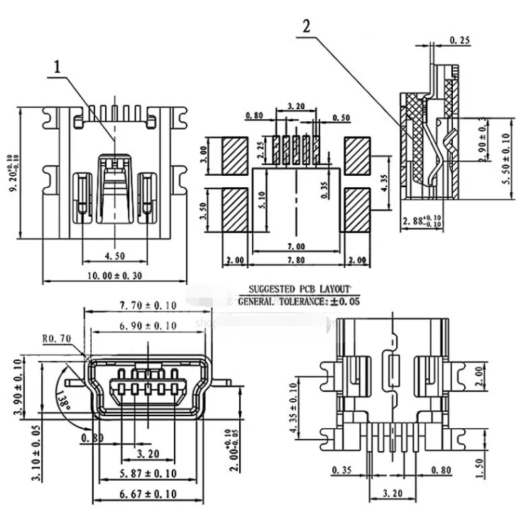 Comprar Carcasa de interfaz SMD 5P mini USB hembra, 4 pies suspendidos