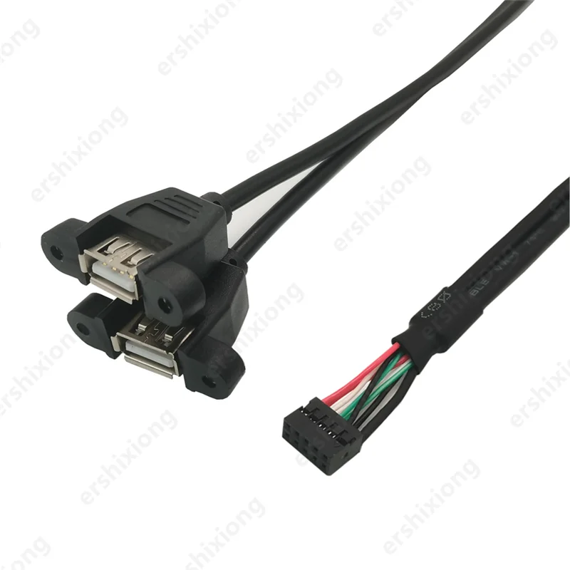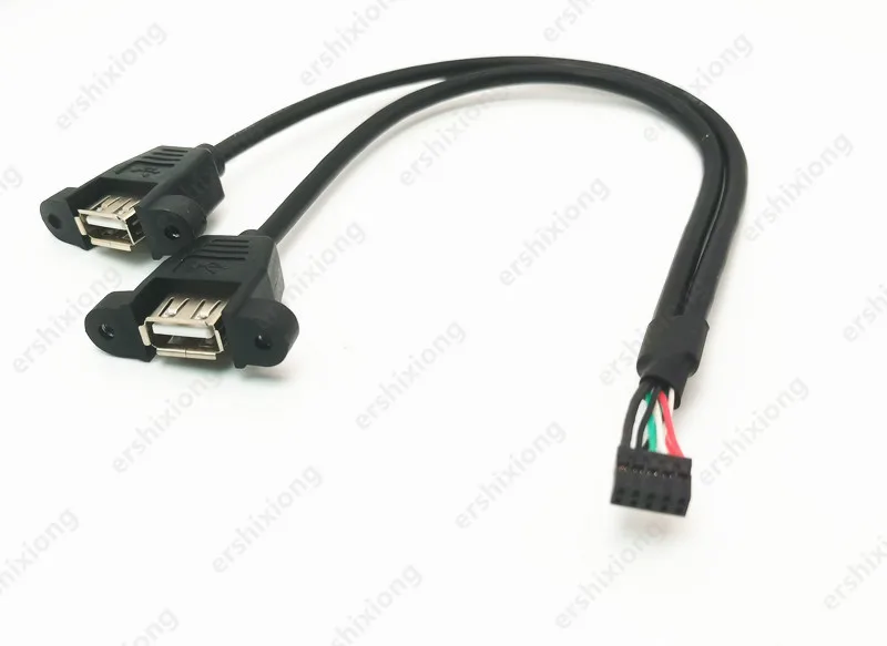 Comprar Carcasa interna Dupont de 9 pines A 2 puertos USB tipo A, Cable de montaje en Panel de bloqueo de tornillo hembra, 30CM