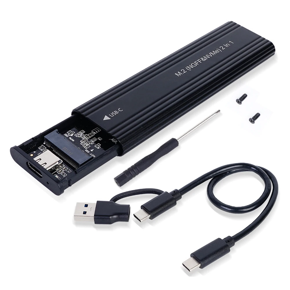 Caja SSD NVMe SATA M.2 10 Gbps Protocolo simple/doble M.2 a USB tipo C 3.1 SSD Caja de disco duro externo compatible con clave M/llave B+M