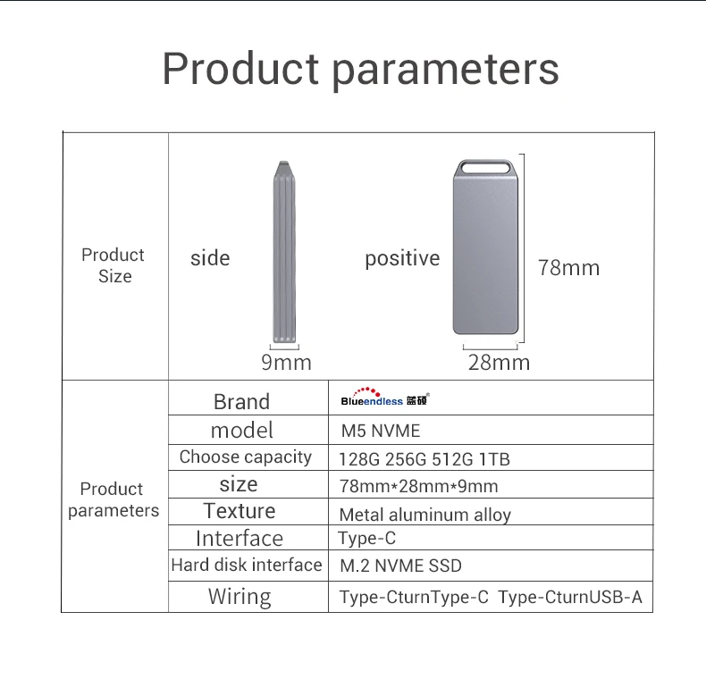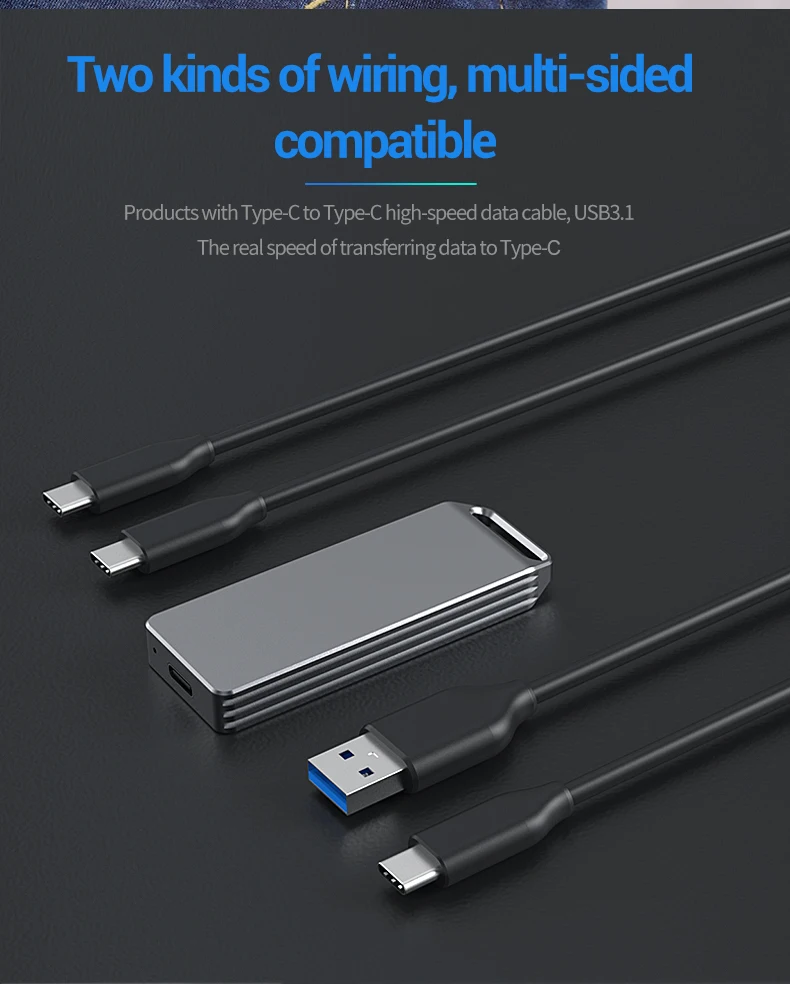 Solo es compatible con el protocolo NVME PCI-E clave M y clave M + B SSD, con cable tipo-c a USB 3,0 de 30 cm o cable tipo-c a usb3.0 de 30 cm y cable tipo-c a tipo-c, color gris.