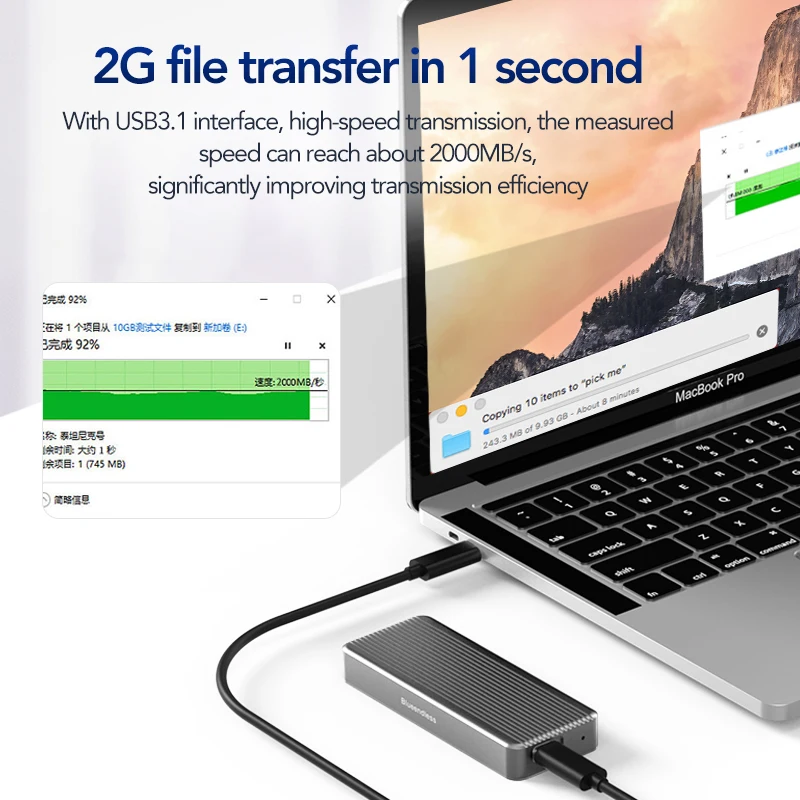 Solo es compatible con el protocolo NVME PCI-E clave M y clave M + B SSD, con cable tipo-c a USB 3,0 de 30 cm o cable tipo-c a usb3.0 de 30 cm y cable tipo-c a tipo-c, color gris.