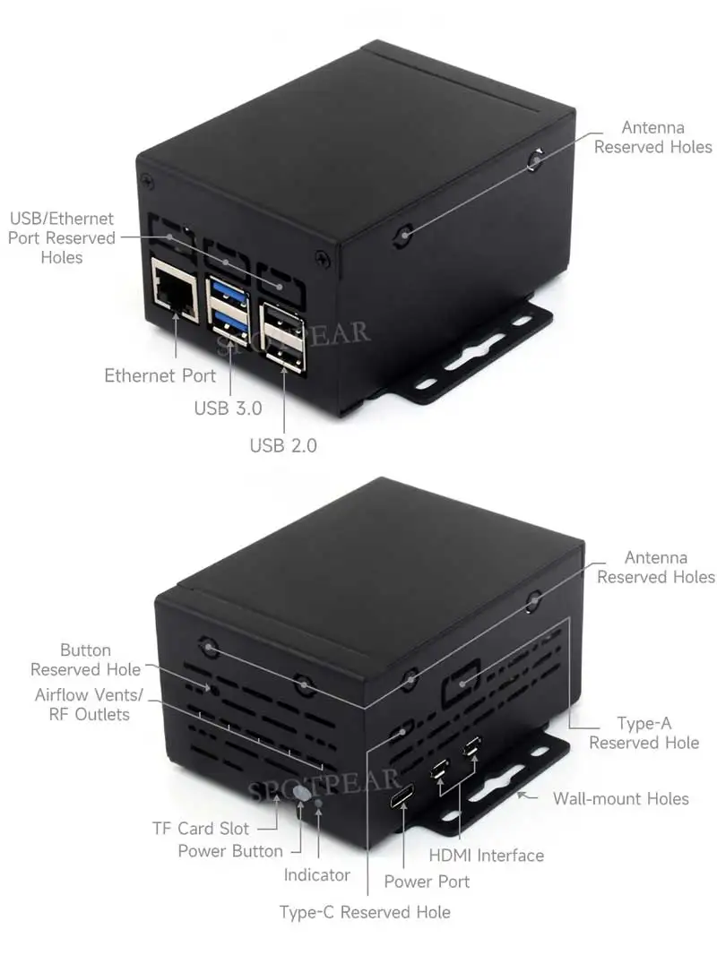 [] Carcasa de metal con diseño de apariencia simple, compatible con la mayoría de los sombreros/módulos y accesorios de Raspberry Pi 5