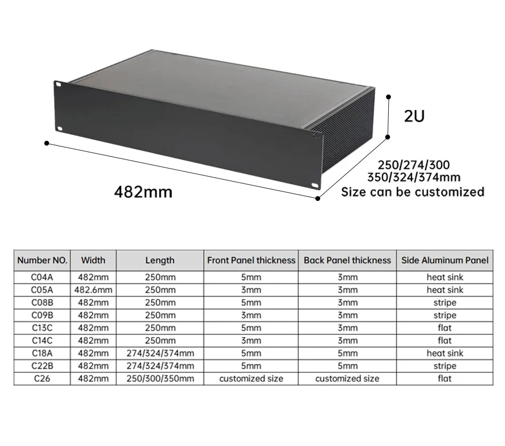 Carcasa de metal de hoja de controlador personalizado, caja de Electrónica Industrial de aluminio, 19 pulgadas, montaje en estante 2U, chasis de gabinete de servidor