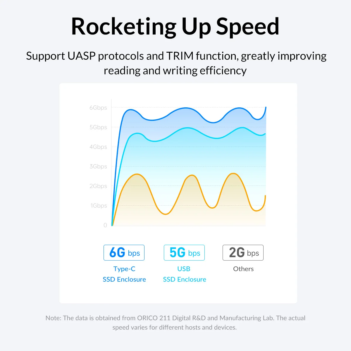 • USB3.0/Tipo-c de alta velocidad:Experimente la transferencia de datos rápida con el estuche HDD de ORICO, con una interfaz USB3.0/Tipo-C que admite una velocidad máxima de 6Gbps.