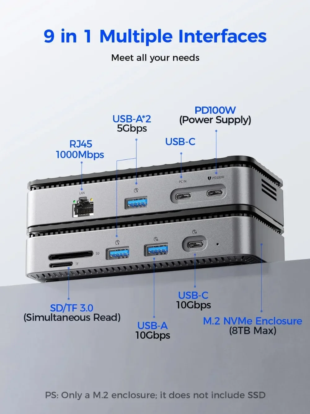 ¿Paraquoi choisir ORICO 9 en 1 Dock Station con ventilador de refrigeración M.2 cajas SSD?