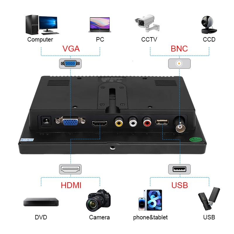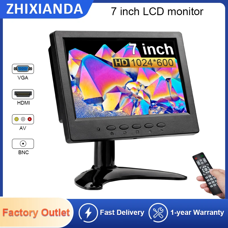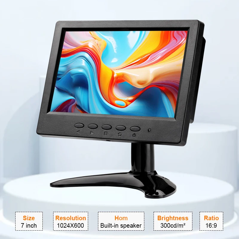 Comprar Carcasa de plástico de pantalla LCD de escritorio IPS 1024x600 de 7 pulgadas con entrada HDMI VGA BNC AV USB para Monitor de cámara de coche
