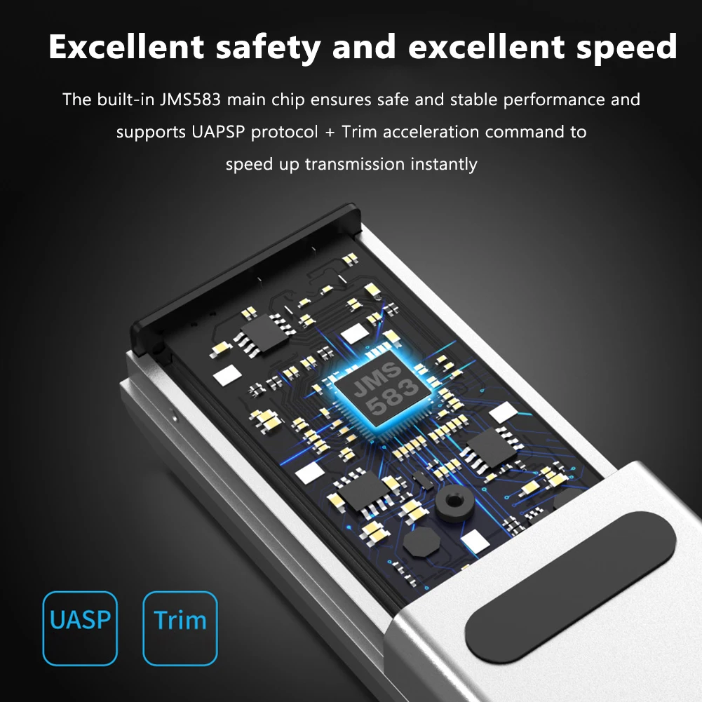 Características: 1. 10Gbps transmisión de alta velocidad:Chip principal integrado JMS583, transfiere archivos grandes de 1GB en segundos. Velocidad de transmisión de 10Gbps, la velocidad de lectura y escritura medida puede alcanzar 992 MB/S. 2. Función de protección de Escritura:Después de encender la tecla de función de protección de escritura, los datos del disco duro no se pueden modificar ni eliminar y se evita la entrada de virus. 3. Ventilador inteligente con control de temperatura:IC de control de temperatura del ventilador inteligente integrado, monitoreo de temperatura de disipación de calor. Cuando la temperatura interna del producto supera los 40 ° C, el ventilador comenzará automáticamente; Cuando la temperatura interna es 40 ° C inferior, el ventilador dejará de funcionar automáticamente. 4. Las almohadillas antideslizantes dobles son estables y resistentes a los golpes:Las almohadillas antideslizantes de la base pueden ser estables y resistentes a los golpes durante la transmisión de datos, protegiendo eficazmente el disco duro de daños. Aletas de enfriamiento de aleación de aluminio de alta densidad. Aumenta el área de contacto entre las aletas de disipación de calor y el aire, mejora eficazmente el efecto de disipación de calor y elimina rápidamente el calor. 5. Plug and play y fuerte compatibilidad:Adecuado para unidad de estado sólido M.2 SSD, compatible con la mayoría de los sistemas operativos del mundo como Windows/Mac/Linux. Ampliamente compatible con M.2 NVMe/ PCle SSD en clave M en tamaños 2280, 2260, 2242, 2230. (Canal SAT M.2 / NGFF SSD mSATA no es compatible). Especificaciones: Origen: China continental Número de modelo: carcasa SSD Tamaño: 3,5 Paquete: Sí Interfaz externa: USB Número de modelo del artículo: C2598 Material del producto: aleación de aluminio + acero inoxidable Interfaz integrada: tecla M.2 M Interfaz de salida: USB 3,1 Gen2 tipo C Esquema de control principal: JMS583 (10Gbps) Disco Duro compatible: unidad de estado sólido M.2 SSD Velocidad de transmisión: USB3.1 GEN2 10Gbps Sistema de soporte: para Windows/Linux/MAC Longitud del cable de datos: 24cm/9,45 pulgadas Tamaño del producto: 102x42x2 5mm/4.02x1.65x0.98in Peso del producto: 280g Nota: Debido a la diferencia del monitor y efecto de la luz, el color real del artículo puede ser ligeramente diferente al color mostrado en las imágenes. ¡Gracias! Permita una desviación de medición de 1-2cm debido a la medición manual. 1 X Cable de datos ![]() ![]() ![]() ![]() ![]() ![]() ![]() ![]() ![]() ![]() |