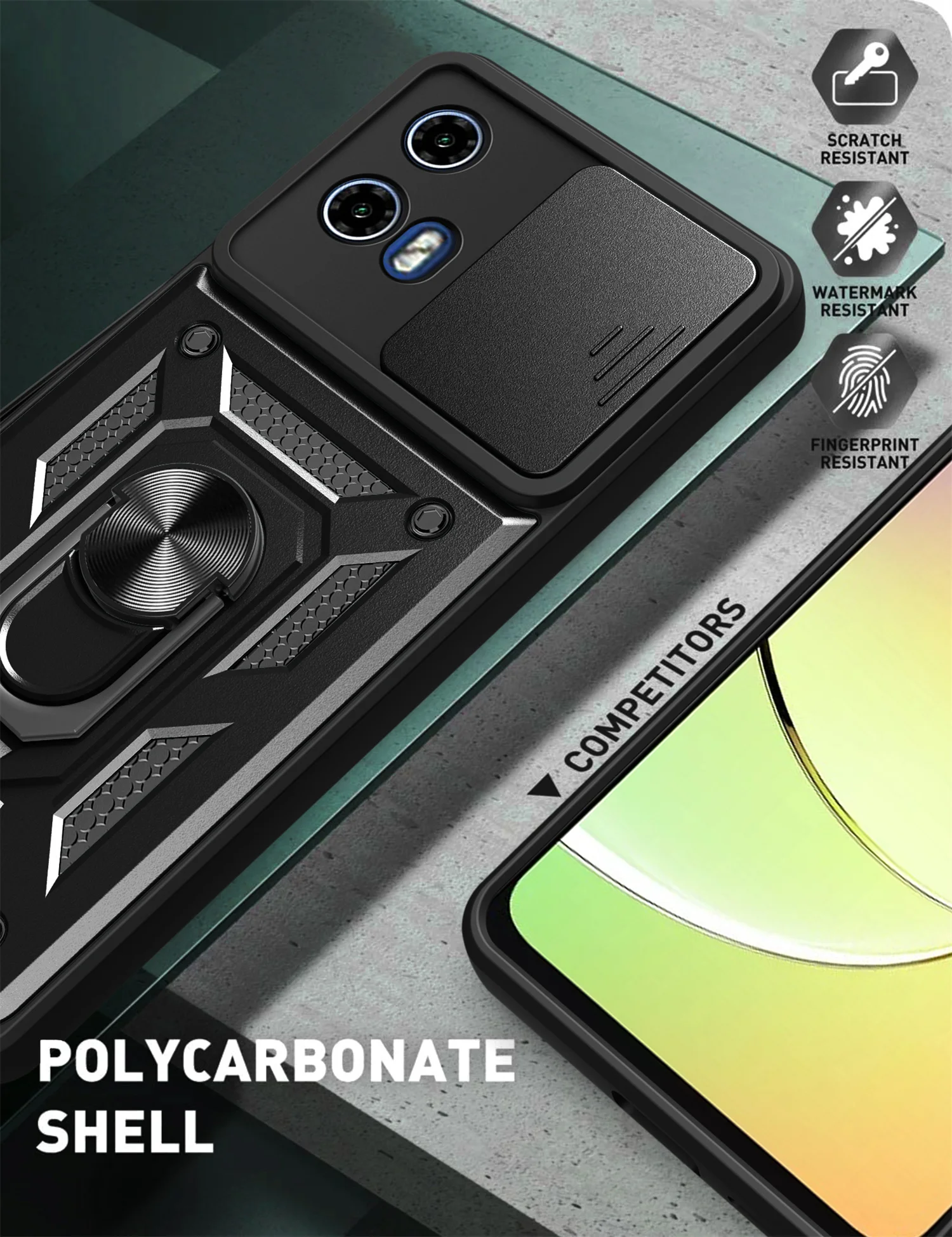 Comprar Carcasa de soporte anticaída para Motorola Moto G34 5G, funda con anillo de armadura, soporte magnético, cubierta deslizante para lente de cámara