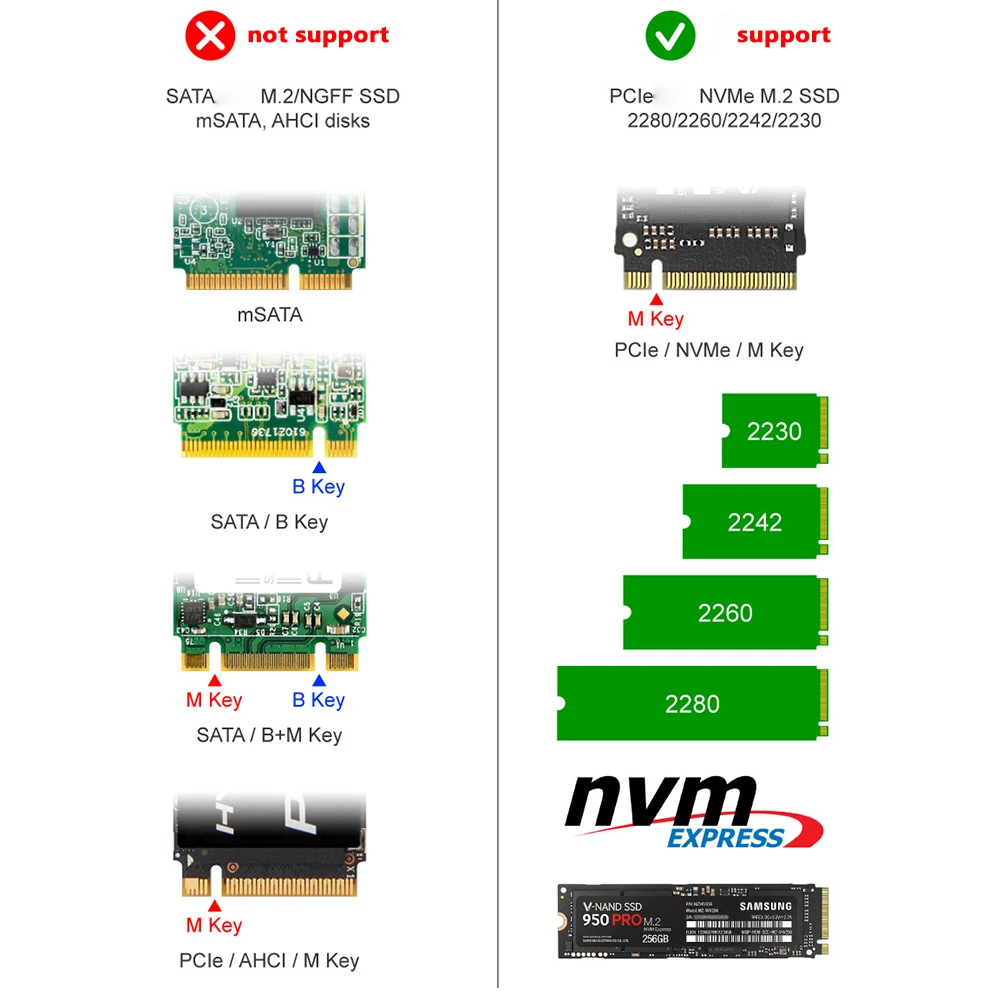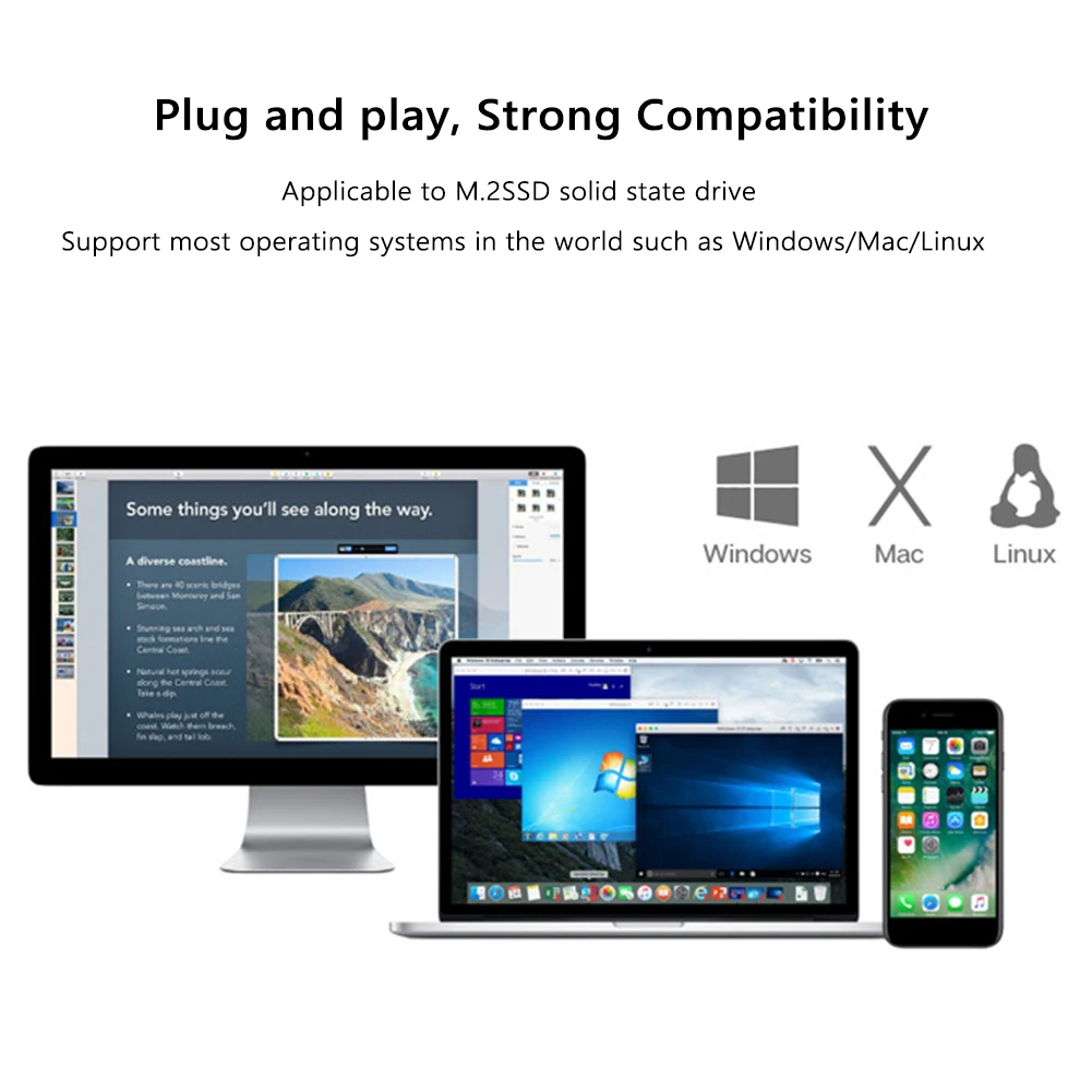 5. Plug and Play y fuerte compatibilidad:Adecuado para la unidad de estado sólido SSD M.2, compatible con la mayoría de los sistemas operativos del mundo, como Windows/Mac/Linux. Ampliamente compatible con M.2 NVMe/ PCle SSD en M Key en tamaños 2280, 2260, 2242, 2230. (Canal SAT M.2 / NGFF SSD mSATA no es compatible).
