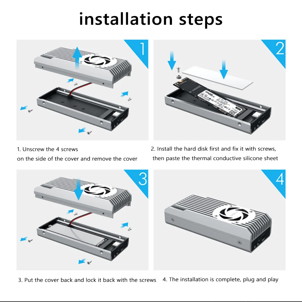 Comprar Carcasa de SSD M.2 NVME de 10Gbps con ventilador de refrigeración integrado, carcasa de SSD M2 NVME, compatible con 2230, 2242, 2260, 2280