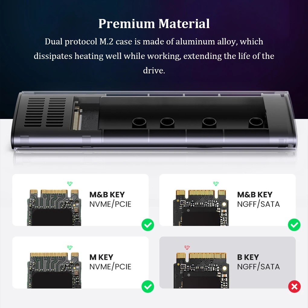 Comprar Carcasa de SSD M2 sin herramientas, instalación NVME SATA, protocolo Dual M 2 a USB 3 1, adaptador para cajas de disco de 5Gbps