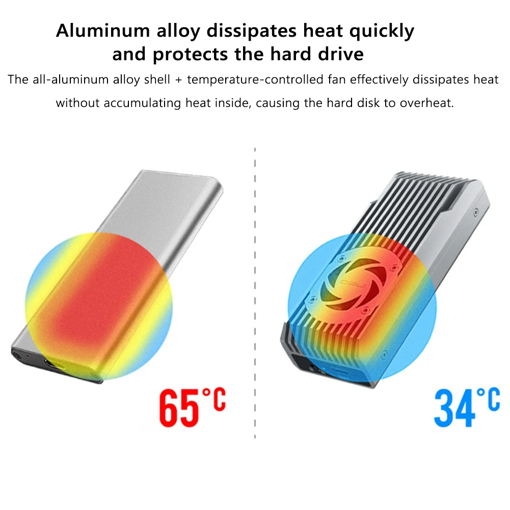 Comprar Carcasa de SSD M2 con ventilador de refrigeración integrado, carcasa de 10gbps, M.2 NVMe, USB3.1, Gen2, tipo C, M.2, NVME, compatible con 2230, 2242, 2260, 2280