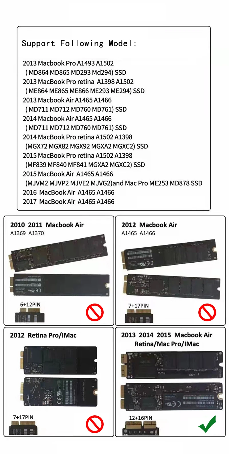 2015 MacBook Air A1465 A1466 (MJVM2 MJVP2 MJVE2 MJVG2) y Mac Pro ME253 MD878 SSD.