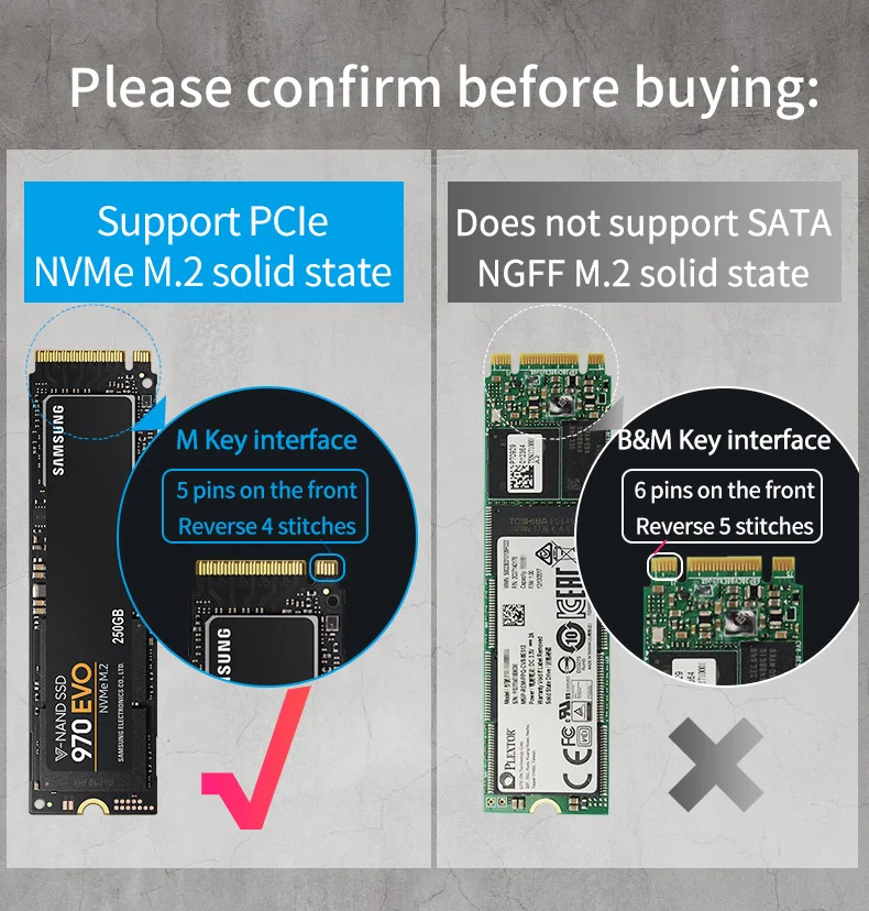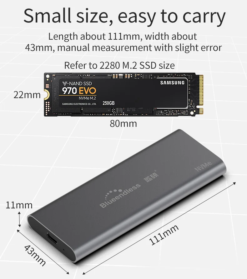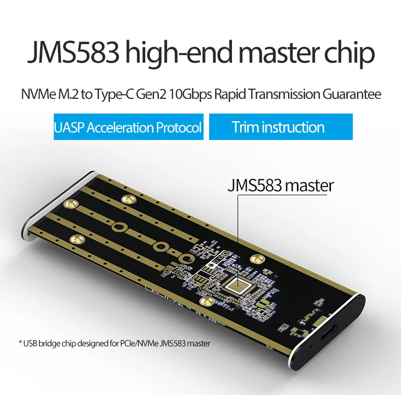 Comprar Carcasa de SSD portátil PCIE M.2 NVME, caja externa de aluminio para disco sólido, compatible con M Key tipo C, USB3.1, 2240/2280