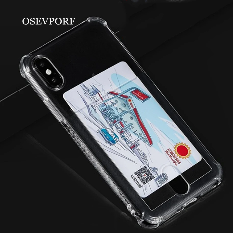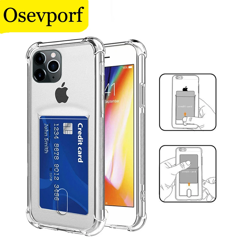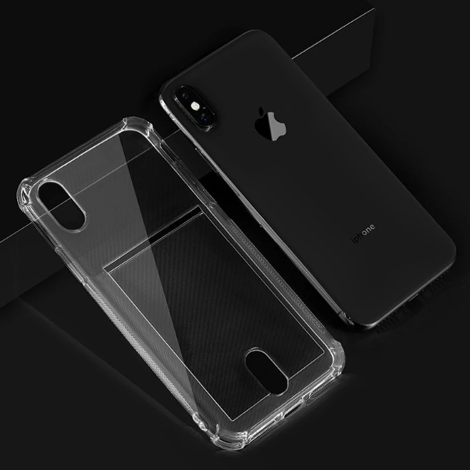 Carcasa para tarjetas de silicona transparente a prueba de golpes de lujo para iPhone 11 Pro X XS Max XR 8 7 6 6S Plus cubierta trasera de protección transparente Capinha