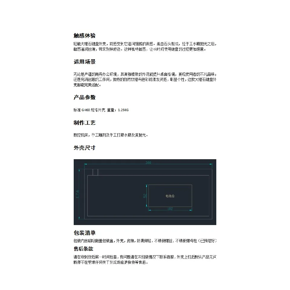 Nombre del producto: carcasa de teclado de mármol natural Stone60