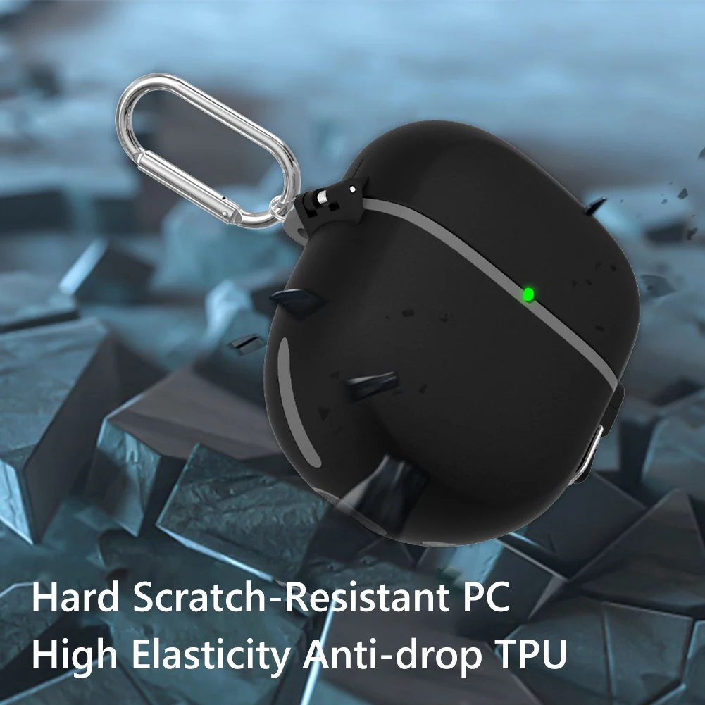 TPU PC Auriculares Cubierta Acoplada Snap Auriculares inalámbricos Cubierta a prueba de arañazos Impermeable para Bose QuietComfort Earbuds II Característica: 1. Diseño de hebilla on-off:La hebilla de encendido y apagado evita que el auricular se caiga, con un interruptor de bloqueo. Cuando la tapa de la caja está cerrada, el interruptor se bloquea para evitar que se caiga. 2. Protección dual:PC duro resistente a los arañazos + TPU de alta elasticidad (resistente al sudor y lavable con agua), material compuesto, que puede reducir eficazmente el impacto y proteger el auricular cuando se cae. 3. Antipérdida:Equipado con hebilla de metal antipérdida para montañismo + hebilla de doble bucle + cordón de nailon antipérdida, seguro múltiple, sin miedo a la pérdida y fácil de llevar. 4. Puerto de carga RESERVADO:La posición precisa del orificio no afecta a la carga inalámbrica, y no es necesario quitar la cubierta protectora. Admite carga inalámbrica, reserva con precisión el puerto de carga de línea y el puerto indicador de carga. 5. Garantía de satisfacción:Nos esforzamos por proporcionar a cada cliente el más alto nivel de servicio al cliente para garantizar una experiencia de compra agradable. Si tiene algún problema, consulta o necesita ayuda, no dude en contactarnos directamente.