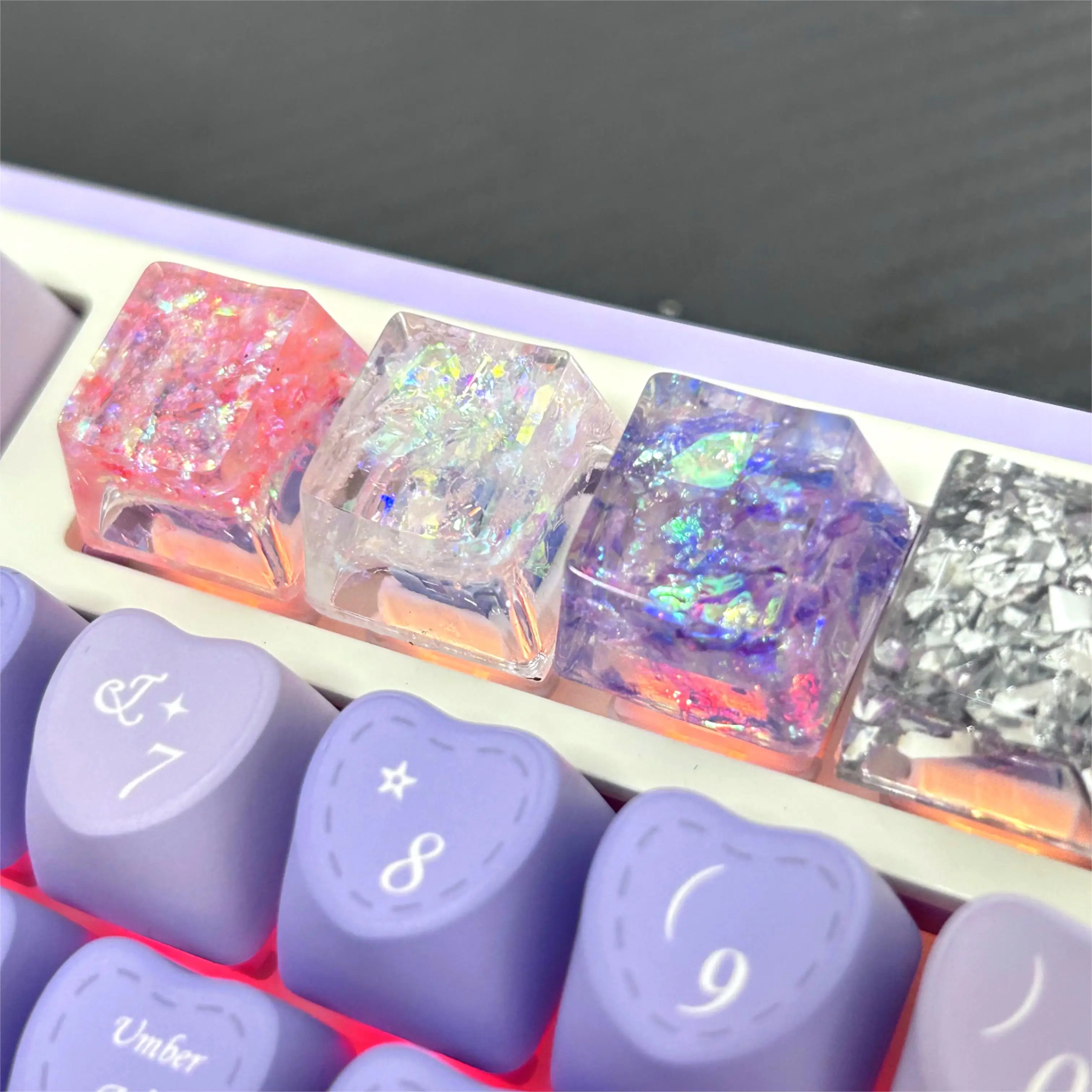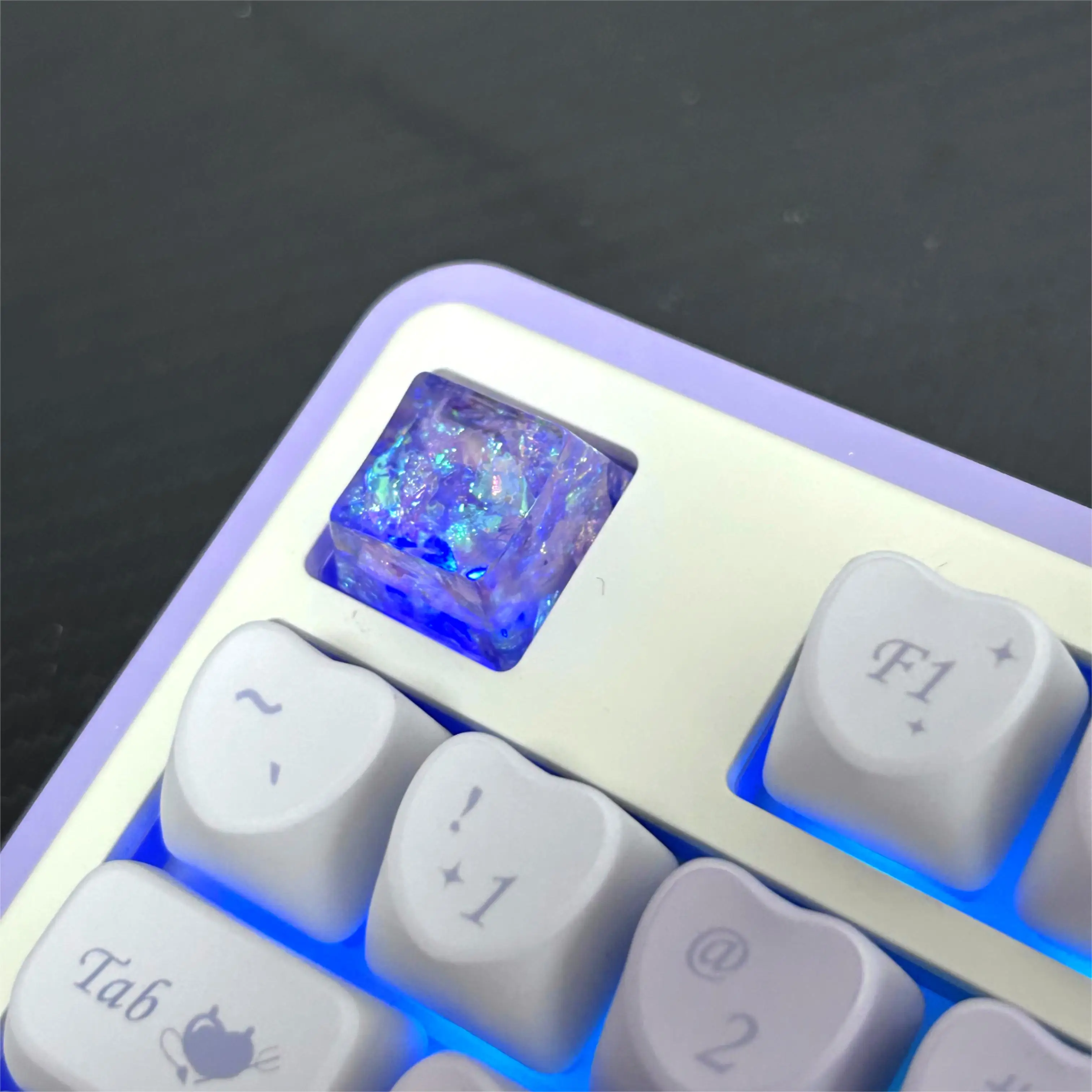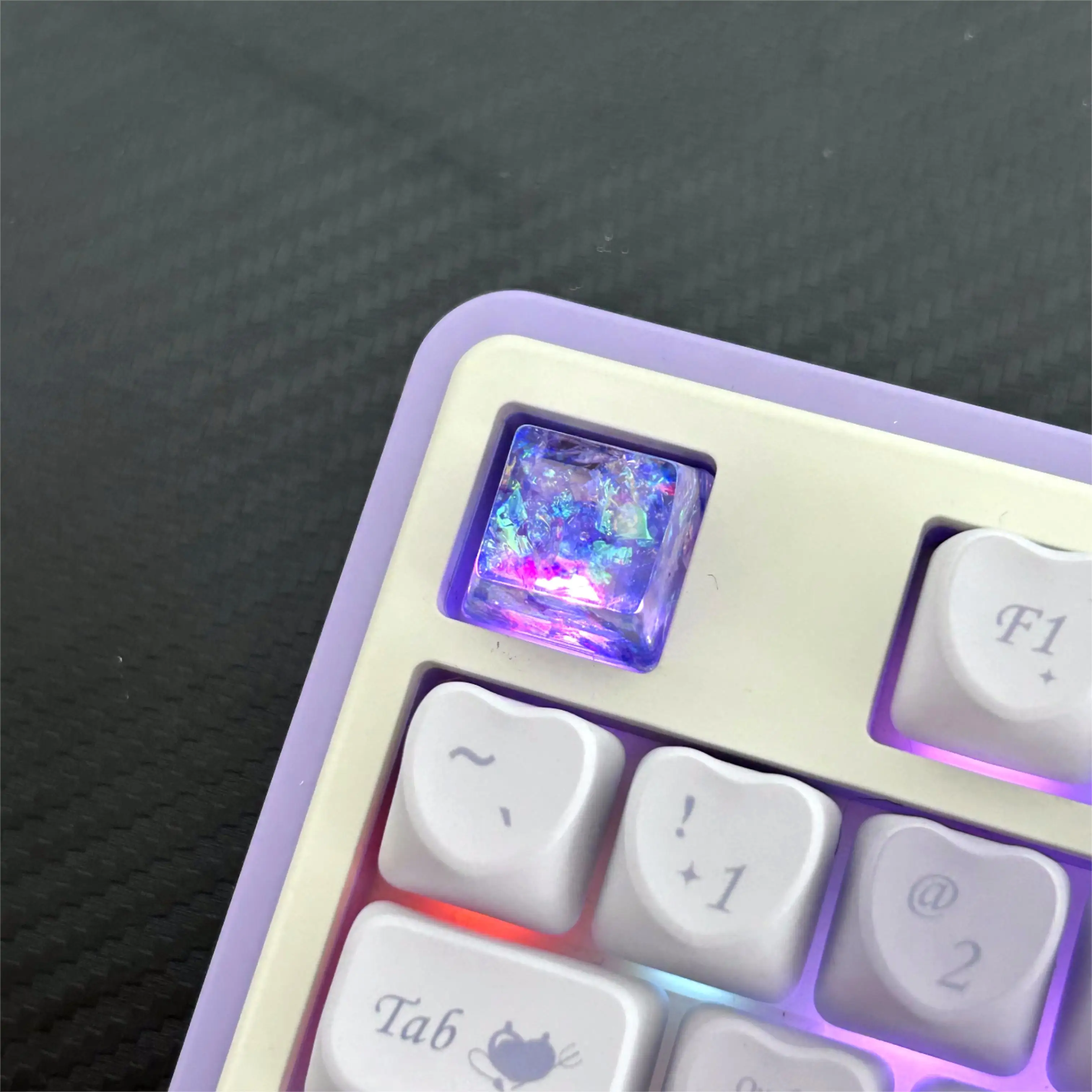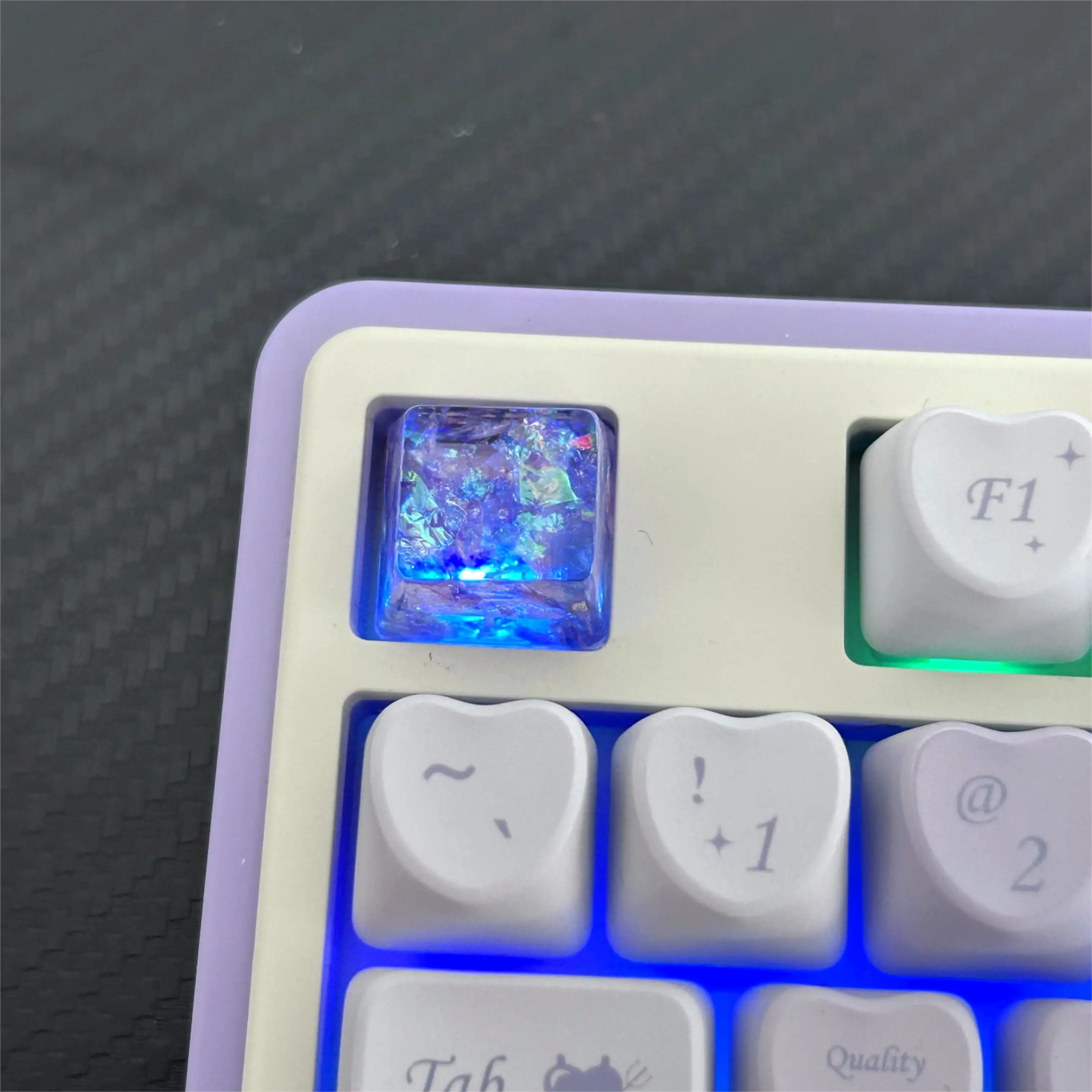 Comprar Carcasa translúcida de pegamento epoxi hecha a mano, tapa de tecla de papel de resina colorida para teclado mecánico, tapa de tecla Original con personalidad