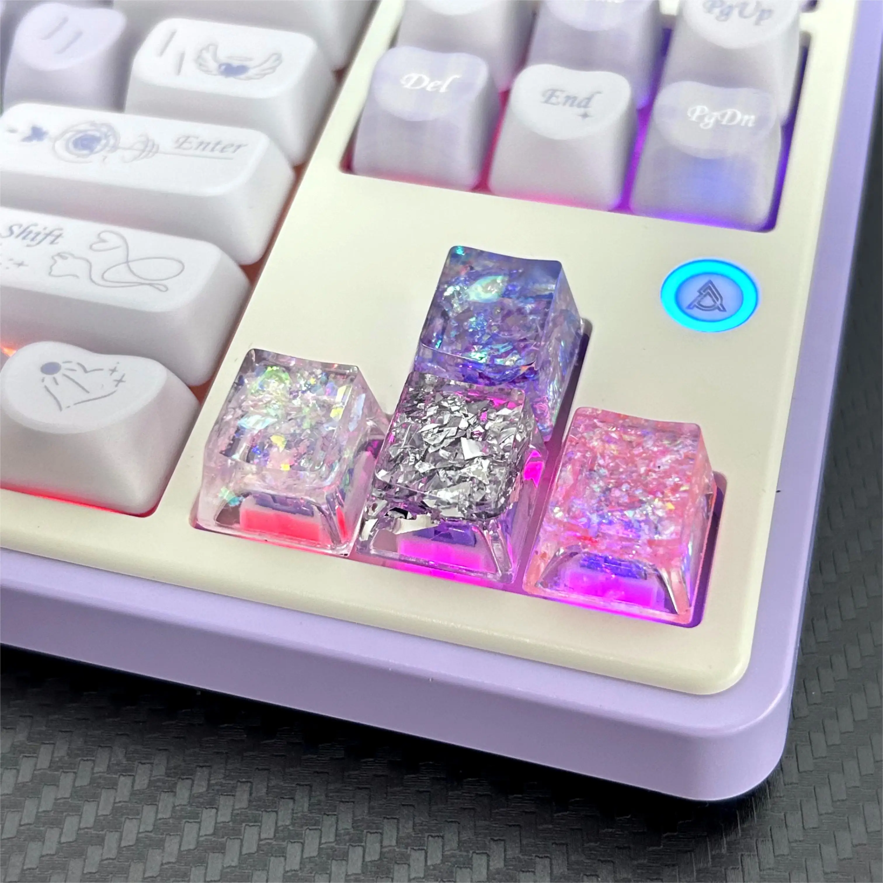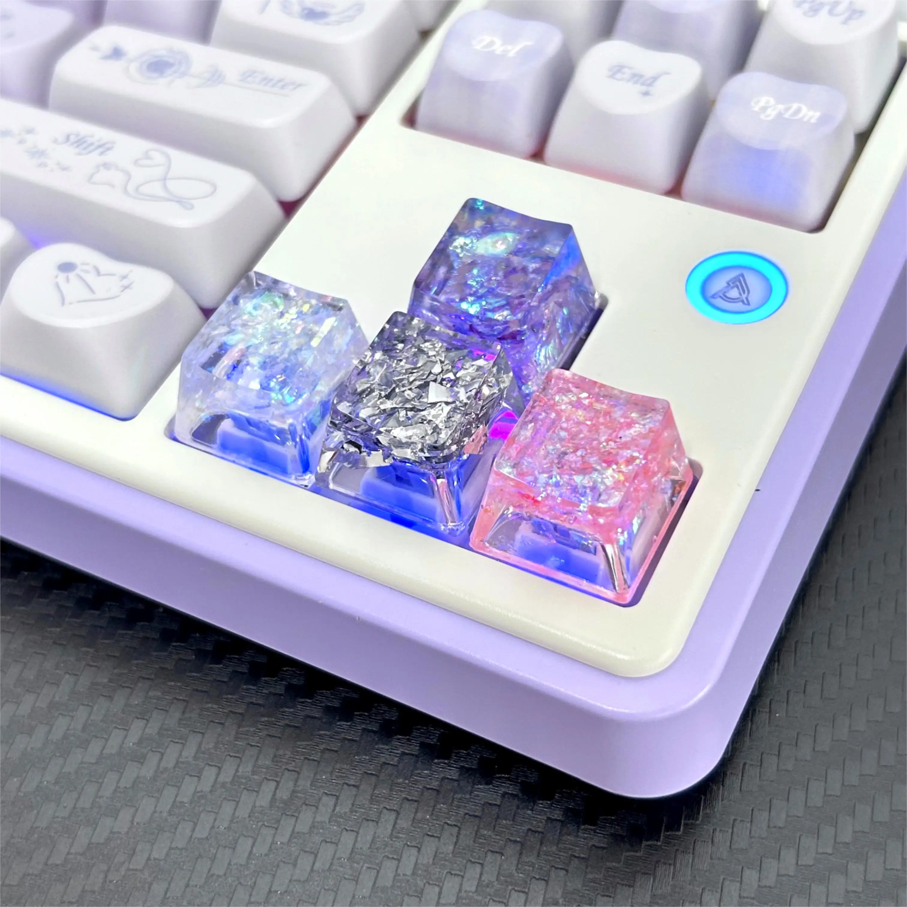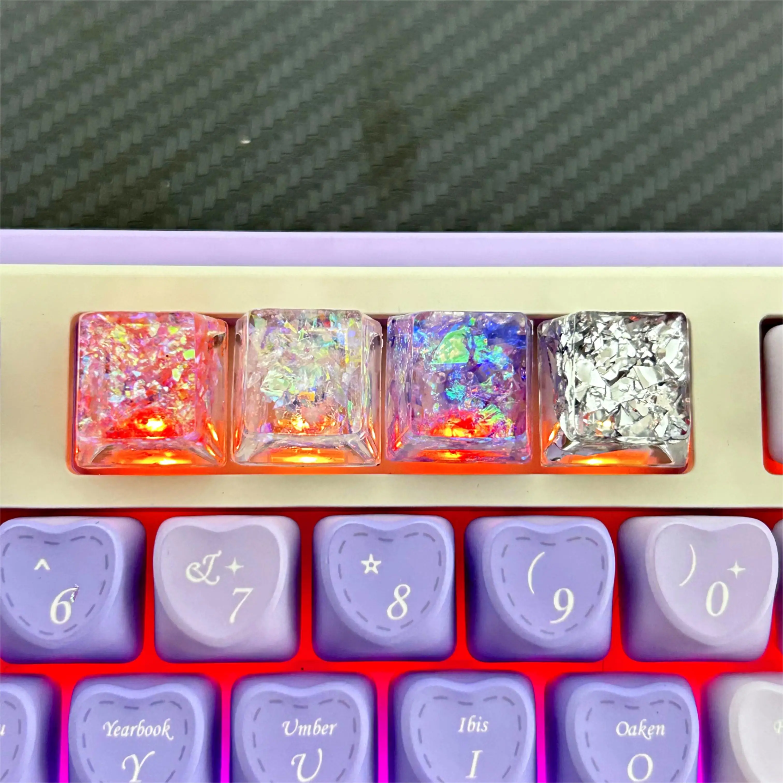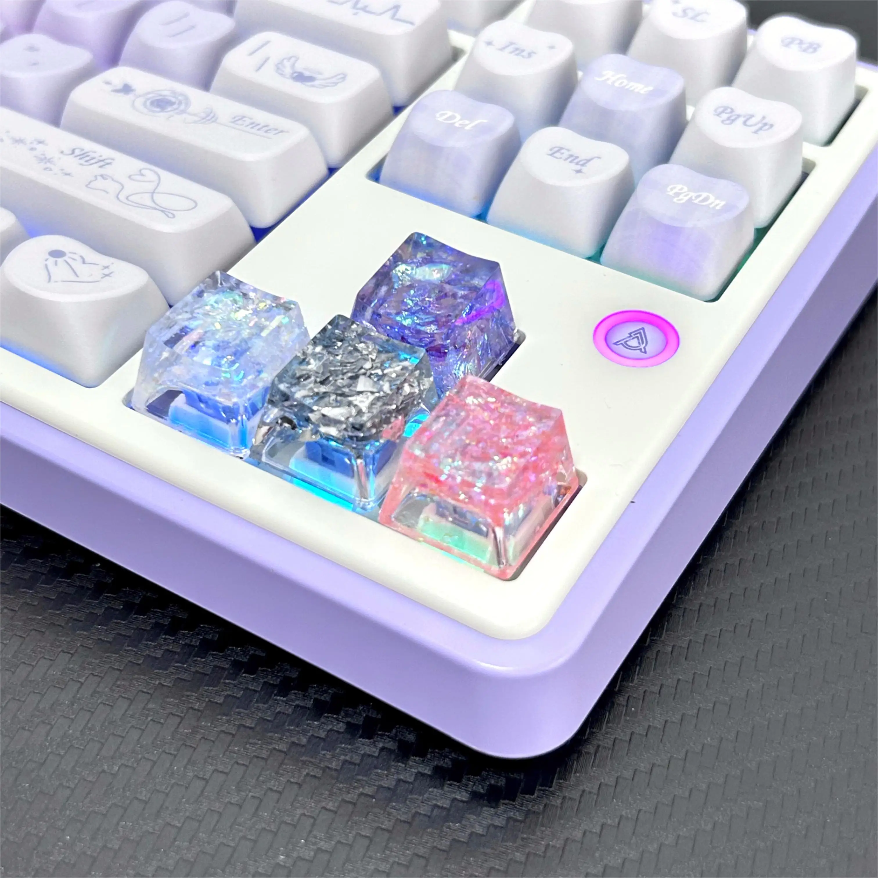 Comprar Carcasa translúcida de pegamento epoxi hecha a mano, tapa de tecla de papel de resina colorida para teclado mecánico, tapa de tecla Original con personalidad