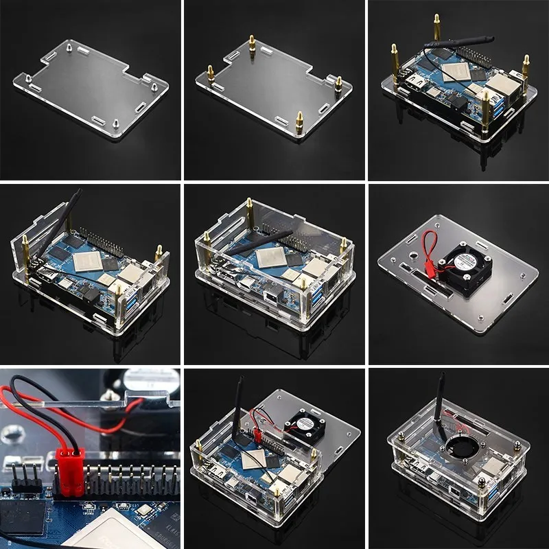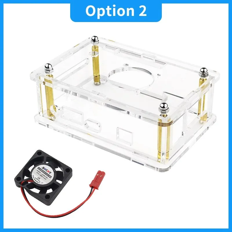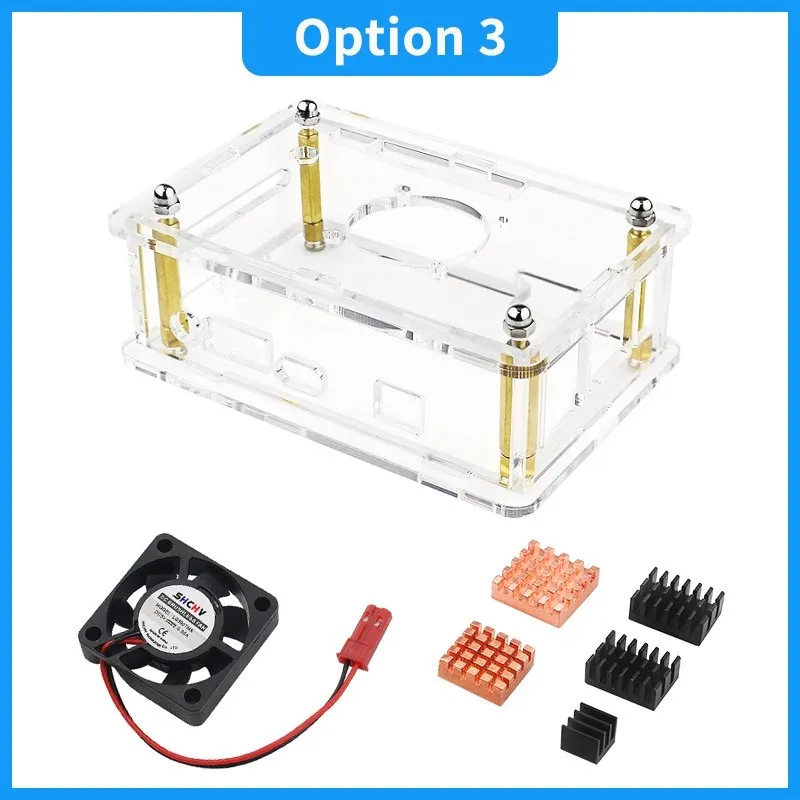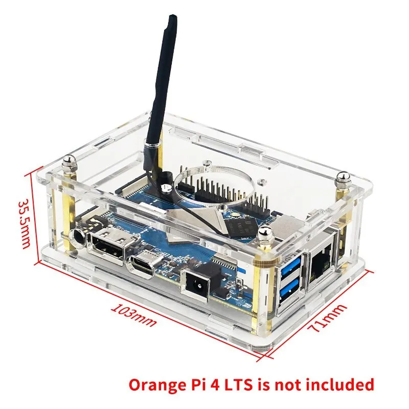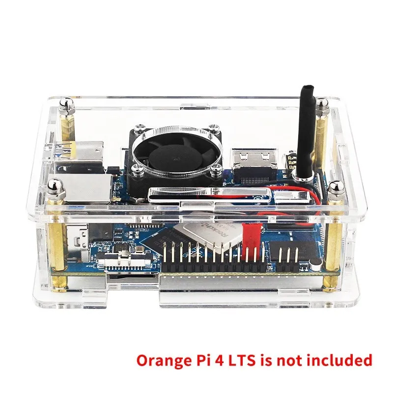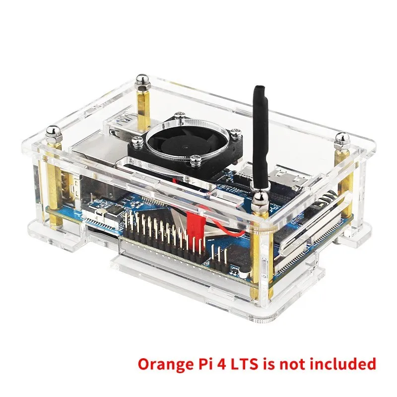 Comprar Carcasa transparente de acrílico naranja Pi 4 LTS, disipadores de calor opcionales, ventilador con varias Interfaces para Orange Pi 4 LTS