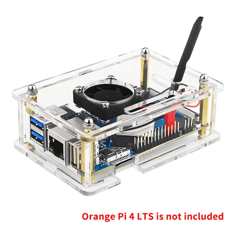 Comprar Carcasa transparente de acrílico naranja Pi 4 LTS, disipadores de calor opcionales, ventilador con varias Interfaces para Orange Pi 4 LTS