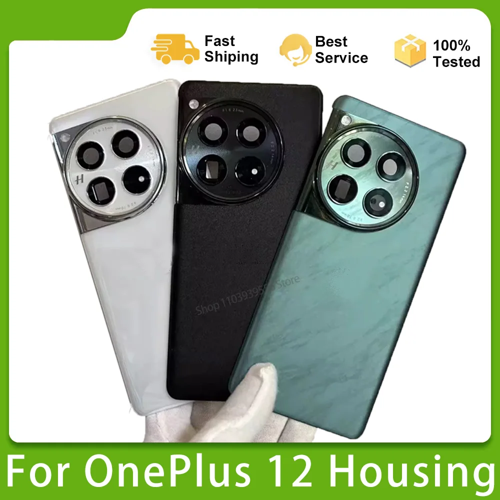 Comprar Carcasa trasera de cristal de alta calidad para OnePlus 12 5G, funda de Panel trasero para puerta de batería, reemplazo adhesivo de lente de cámara para 1 + 12