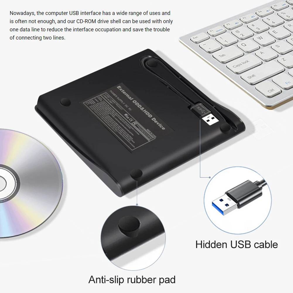 Comprar Carcasa de unidad externa USB 3,0 SATA, carcasa de repuesto antideslizante, reproductor de DVD, CD-ROM, RW