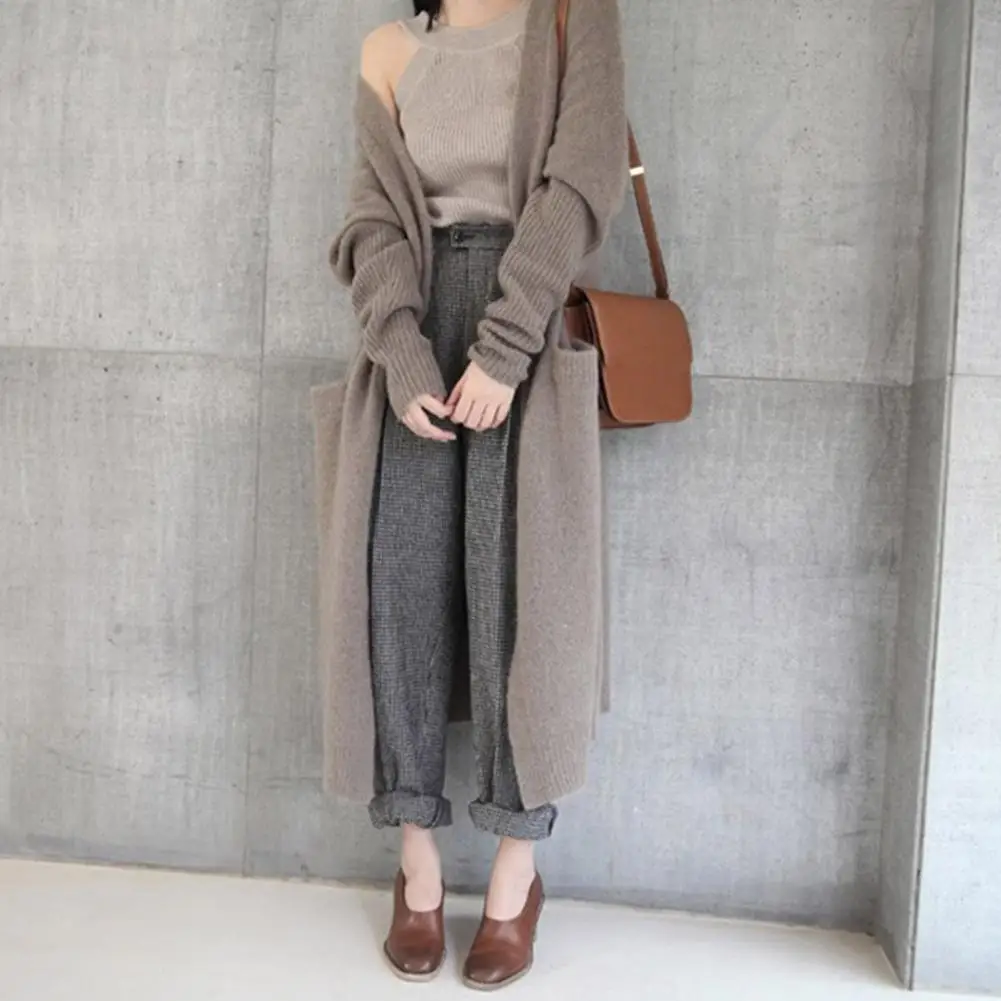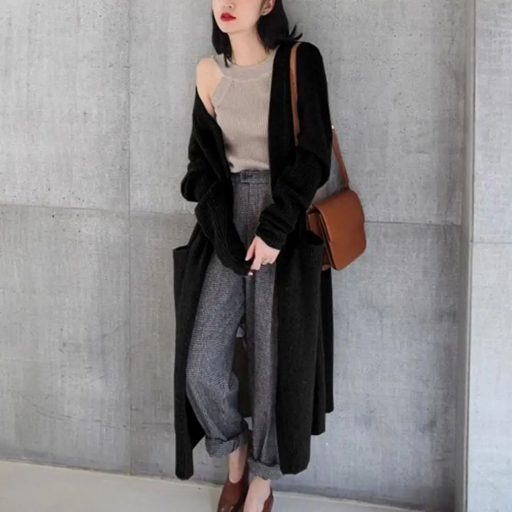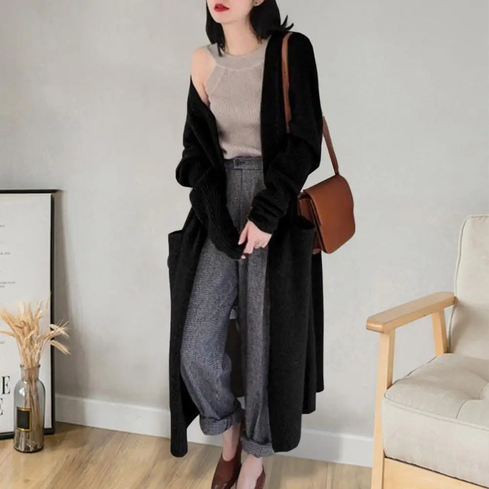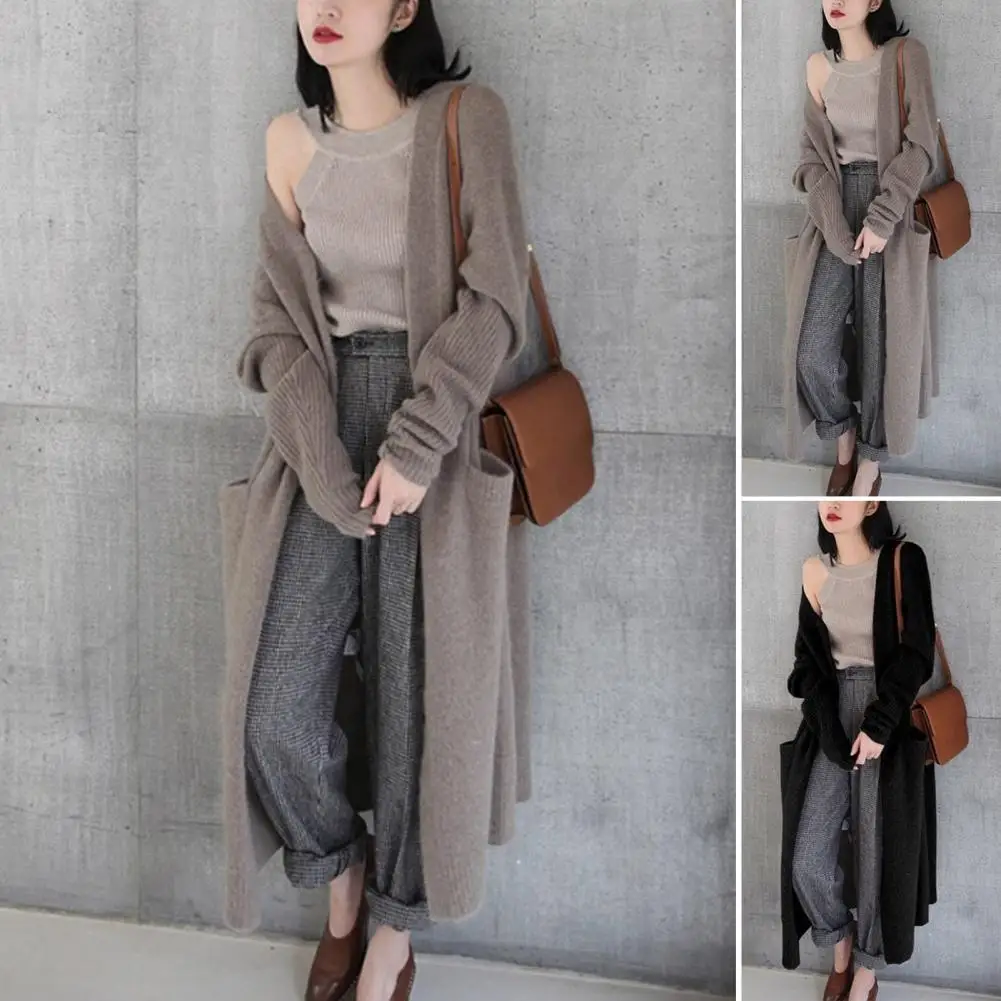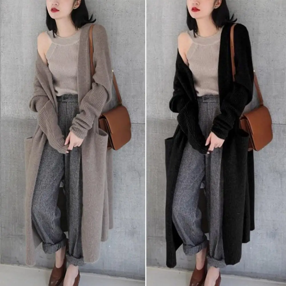Comprar Cárdigan Popular para mujer, abrigo elegante con bolsillos, abrigo largo y holgado para mantener el calor