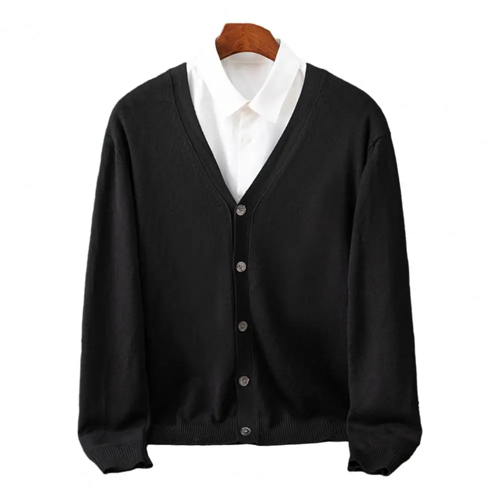 Cárdigan de punto con cuello en V para hombre, cárdigan de un solo pecho, suéter, abrigo para Otoño Invierno, Color sólido, manga larga de punto