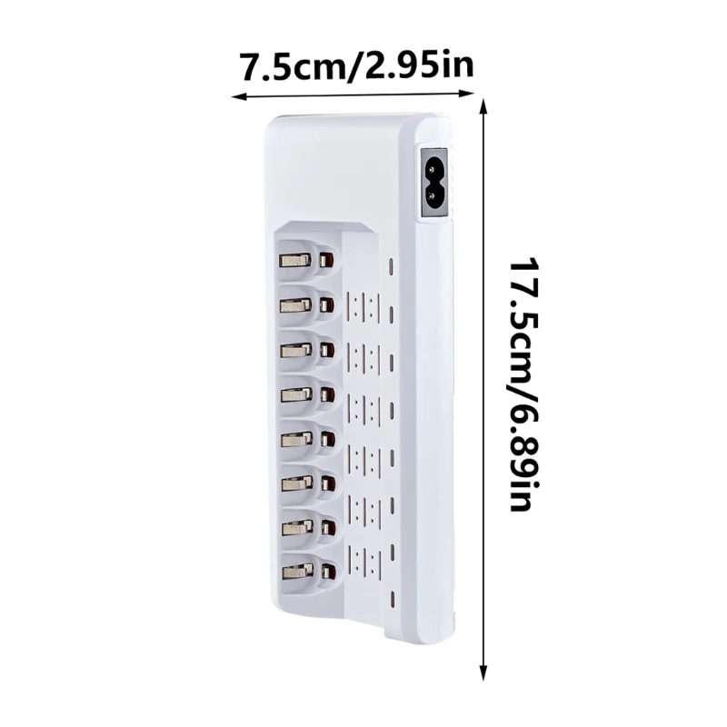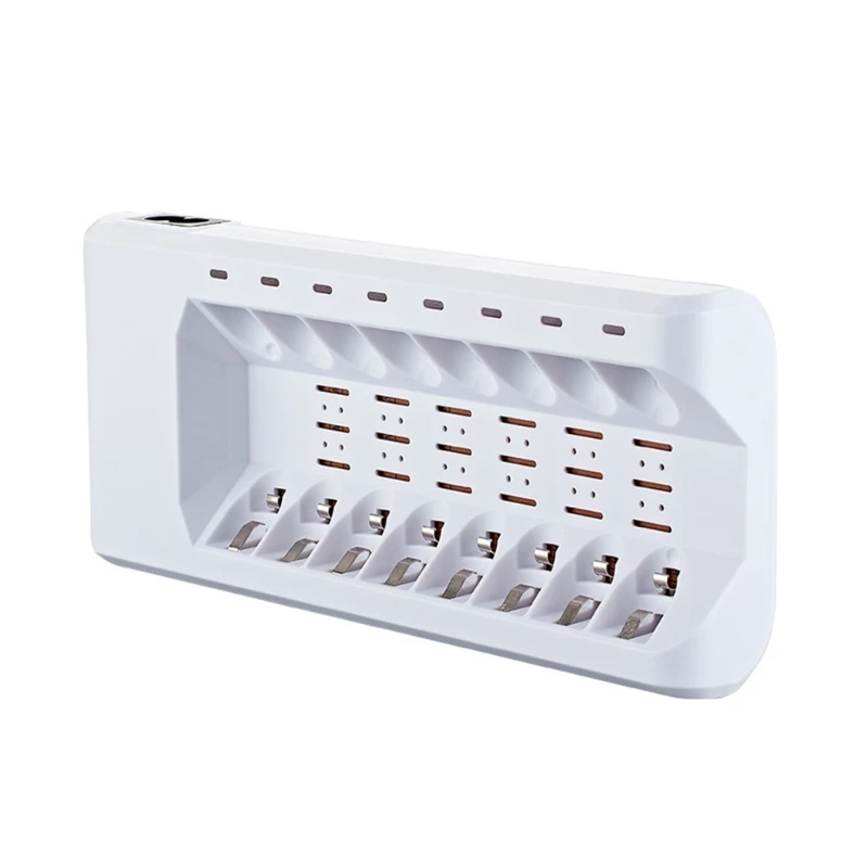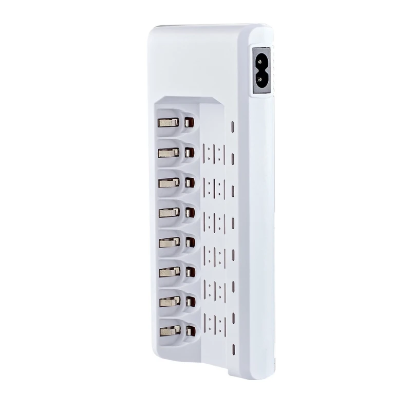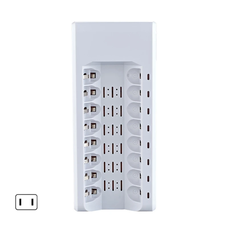 Características:OOTDTYExperimenta la comodidad de cargar varias baterías simultáneamente con la carga independiente de 8 ranuras, que cuenta con dos puertos de carga rápida USB adicionales para dispositivos electrónicos.
