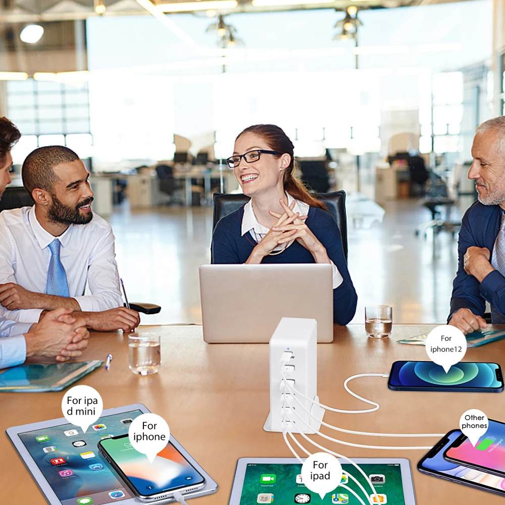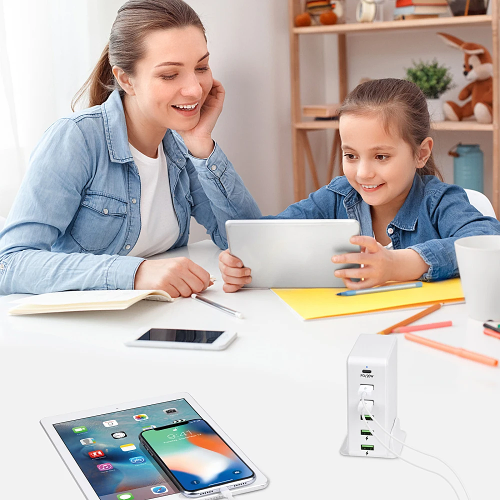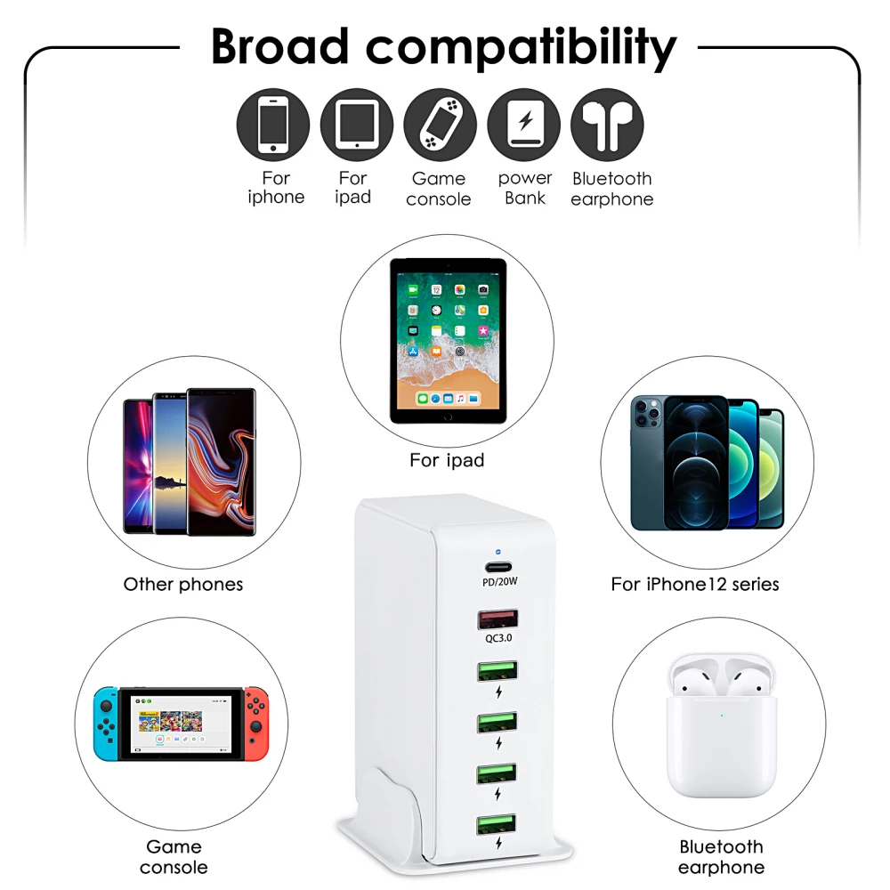 Pd 20W Qc3.0 Protocolo dual Carga rápida 65W Carga rápida Filtro de CA de alto voltaje Pc ignífugo Materia Cargador de 6 puertos 100-240V